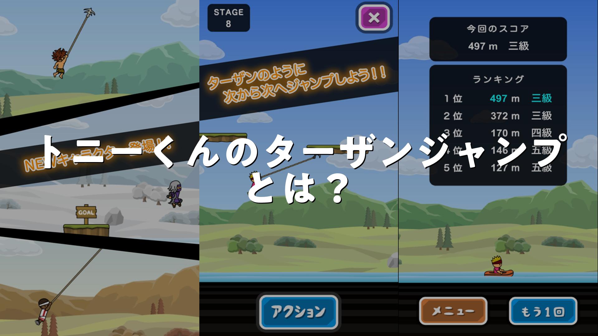トニーくんのターザンジャンプとはどんなアプリか、使い方、評価、無料かをまとめました