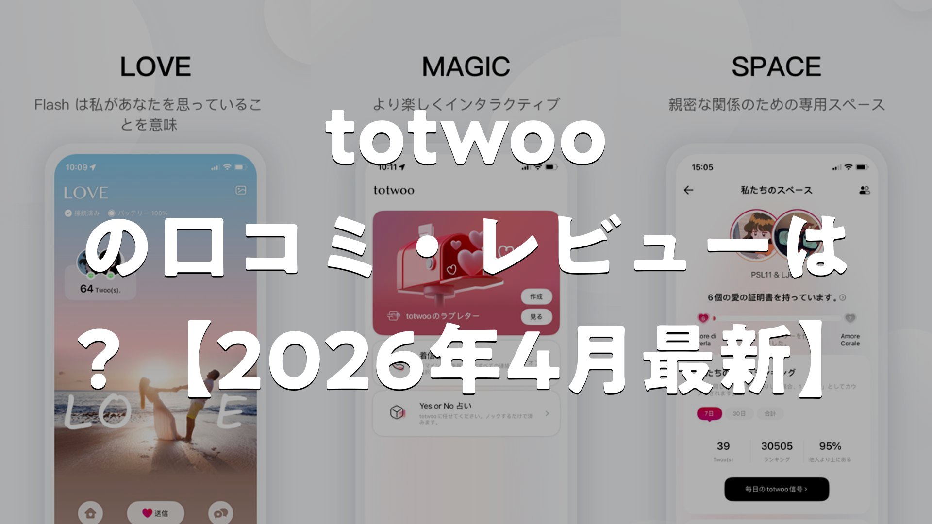 使いやすさ、デザインの美しさ、そして何より心が通い合う体験を提供できるtotwooは、大切な人との関係をより特別にしたいと考えている方にぜひおすすめしたいアプリです。