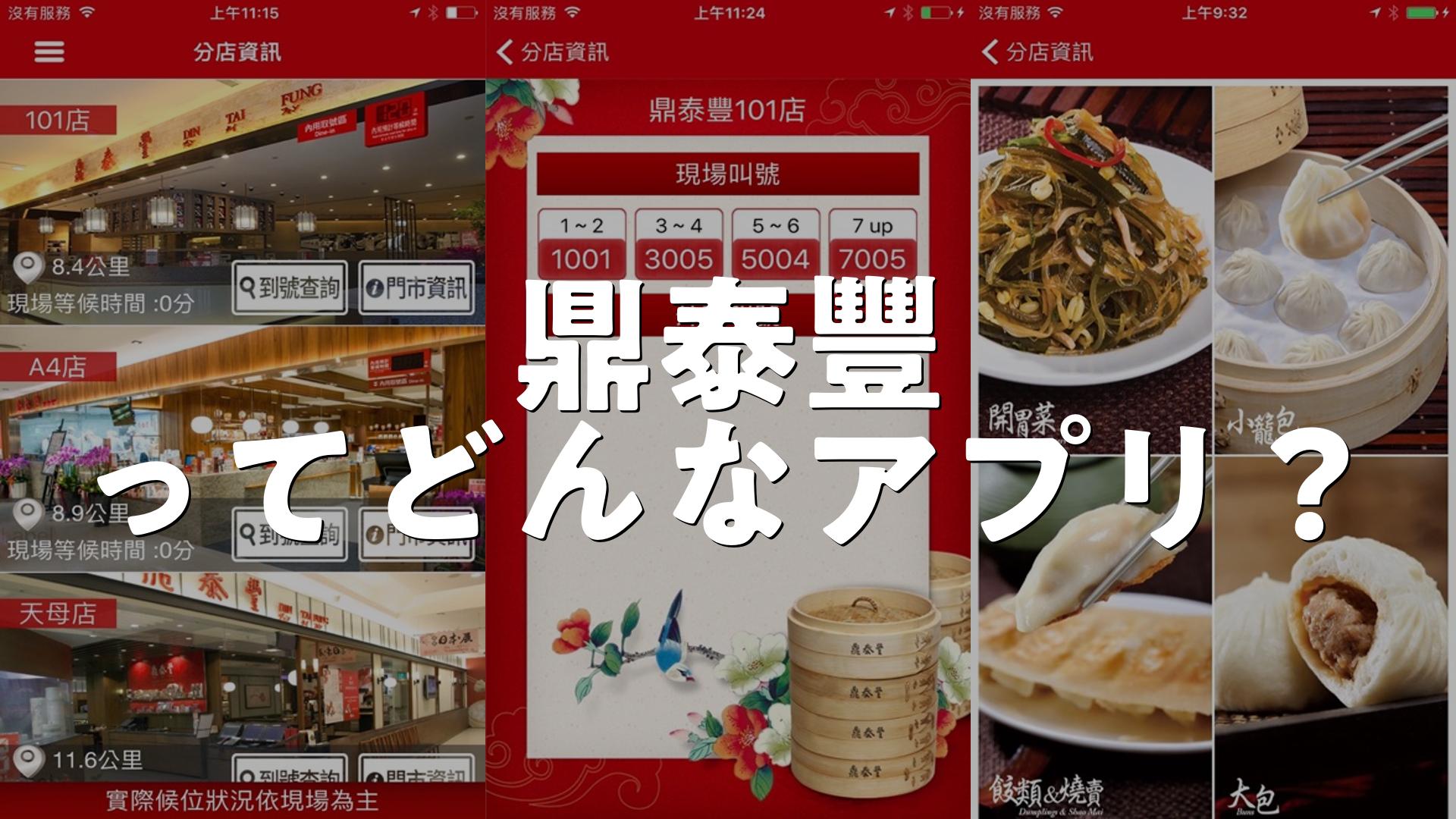 鼎泰豐が顧客サービス向けに開発した公式アプリです。ネット接続で近隣の支店を確認したり、呼び出し番号の表示や推定待ち時間を確認できる機能を持ち、整理券を受け取った後に店を離れてもアプリで呼び出し状況をチェックできるため、行列待ちを快適にするためのツールとして設計されています。
