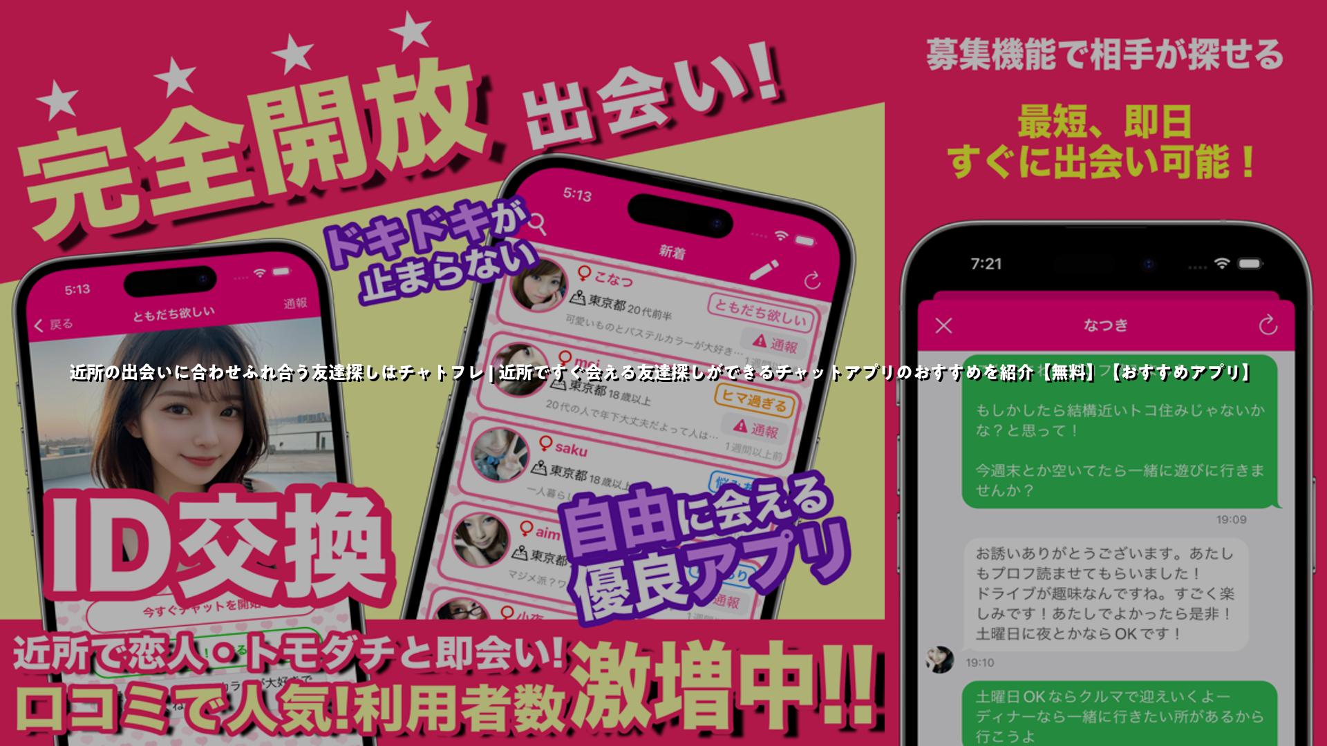 近所の出会いに合わせふれ合う友達探しはチャトフレ | 近所ですぐ会える友達探しができるチャットアプリのおすすめを紹介【無料】【おすすめアプリ】