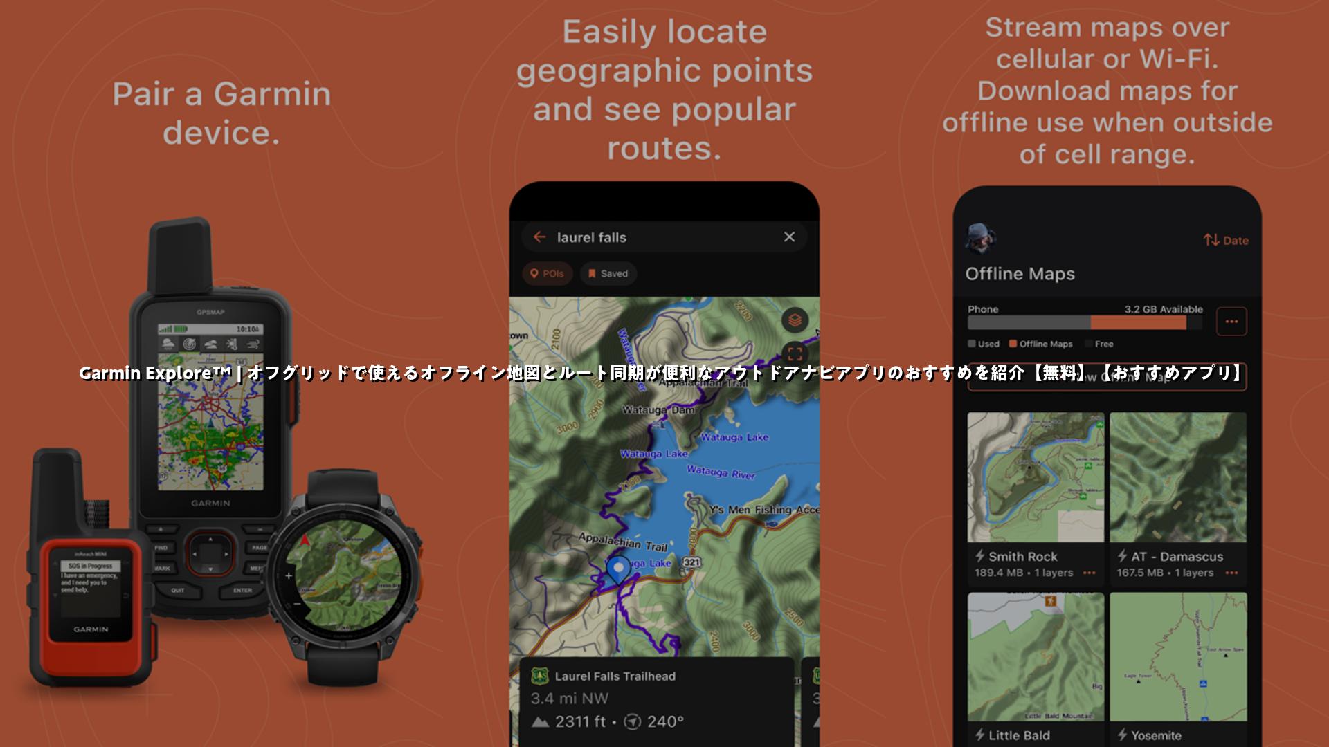 アウトドアで使えるオフライン地図とGarminデバイスへの経路同期が特徴の「Garmin Explore」を紹介します。オフグリッドでのナビ、コース作成、ウェイポイント管理まで対応し、ハイキングやセーリング、救助時の位置共有にも役立つアプリです。