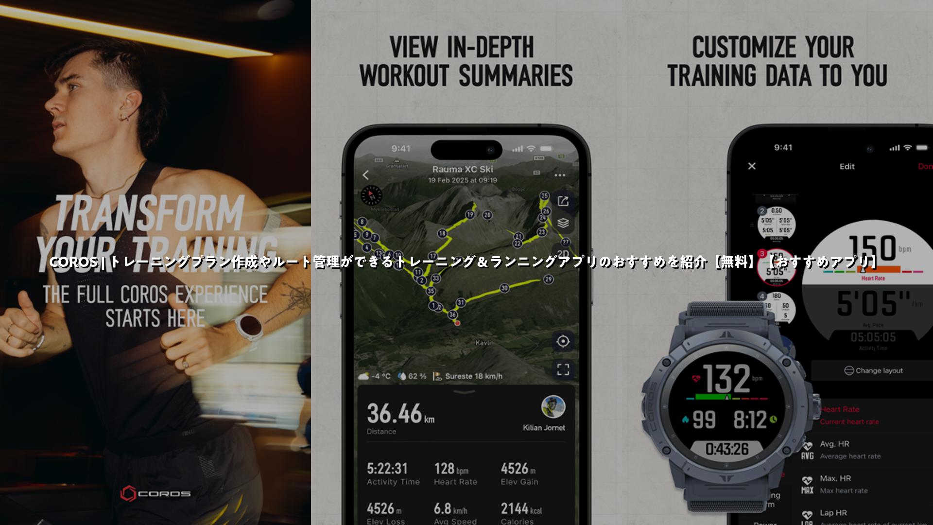 COROSアプリはランニングやサイクリングなどのスポーツ記録、詳細なトレーニングプラン、ルート管理、各種センサーとの同期など多彩な機能を備えたトレーニング向けアプリです。無料版でも基本機能が充実しており、GPS精度や豊富なデータ量を活かして練習の記録・解析をしたい人に特におすすめです。