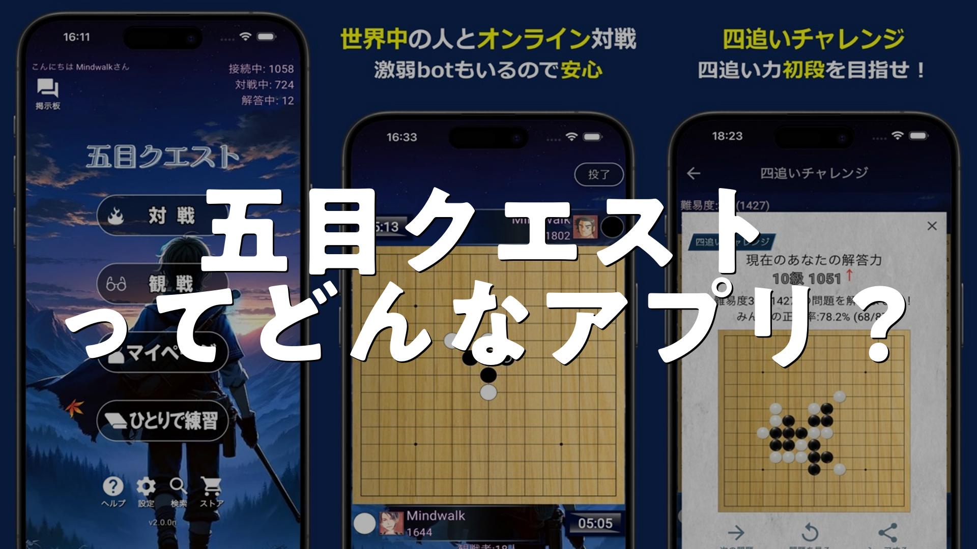 まとめ:五目クエストは「手軽に遊べて学べる」点が強みで、初心者にも優しい設計です。一方でマッチング精度や一部の挙動、広告の表示に関する不満があり、競技性を重視するユーザーは注意が必要です。今後のアップデートで改善が進めばより幅広い層に支持されるでしょう。