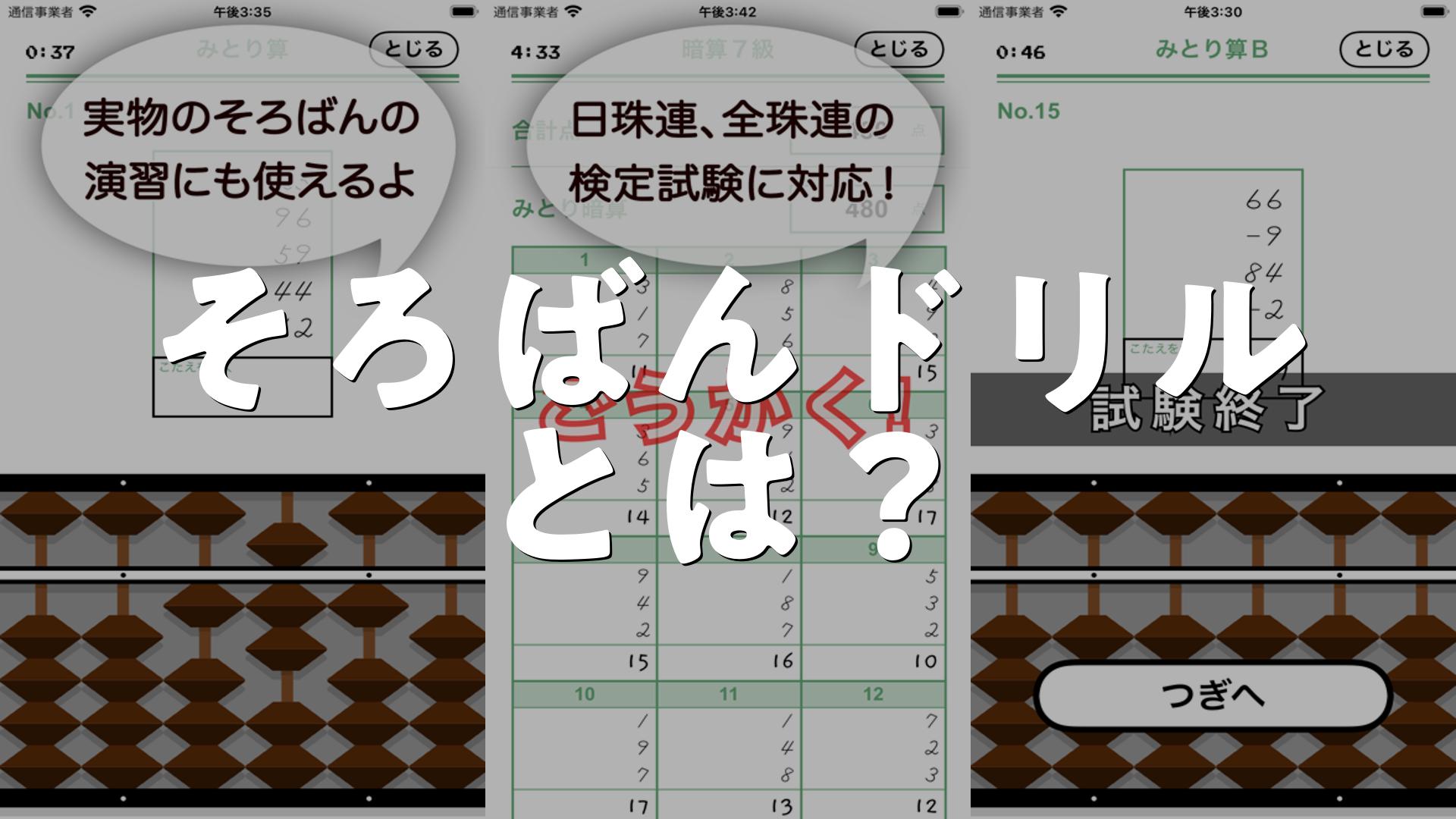 そろばんドリルは、いつでも手軽にそろばん練習ができるアプリです。実機のそろばんと併用でき、音やアニメーションで臨場感があり、級ごとの模擬試験や印刷機能も備わっているため、楽しみながら着実に腕が上がる工夫が詰まっています。