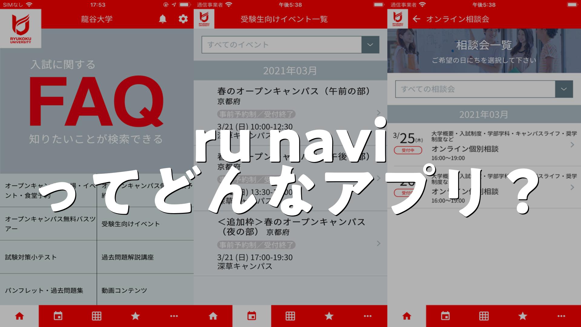 龍谷大学受験生向けアプリ「ru navi(アールユーナビ)」の評判、メリット・デメリット、口コミ・レビューをまとめました