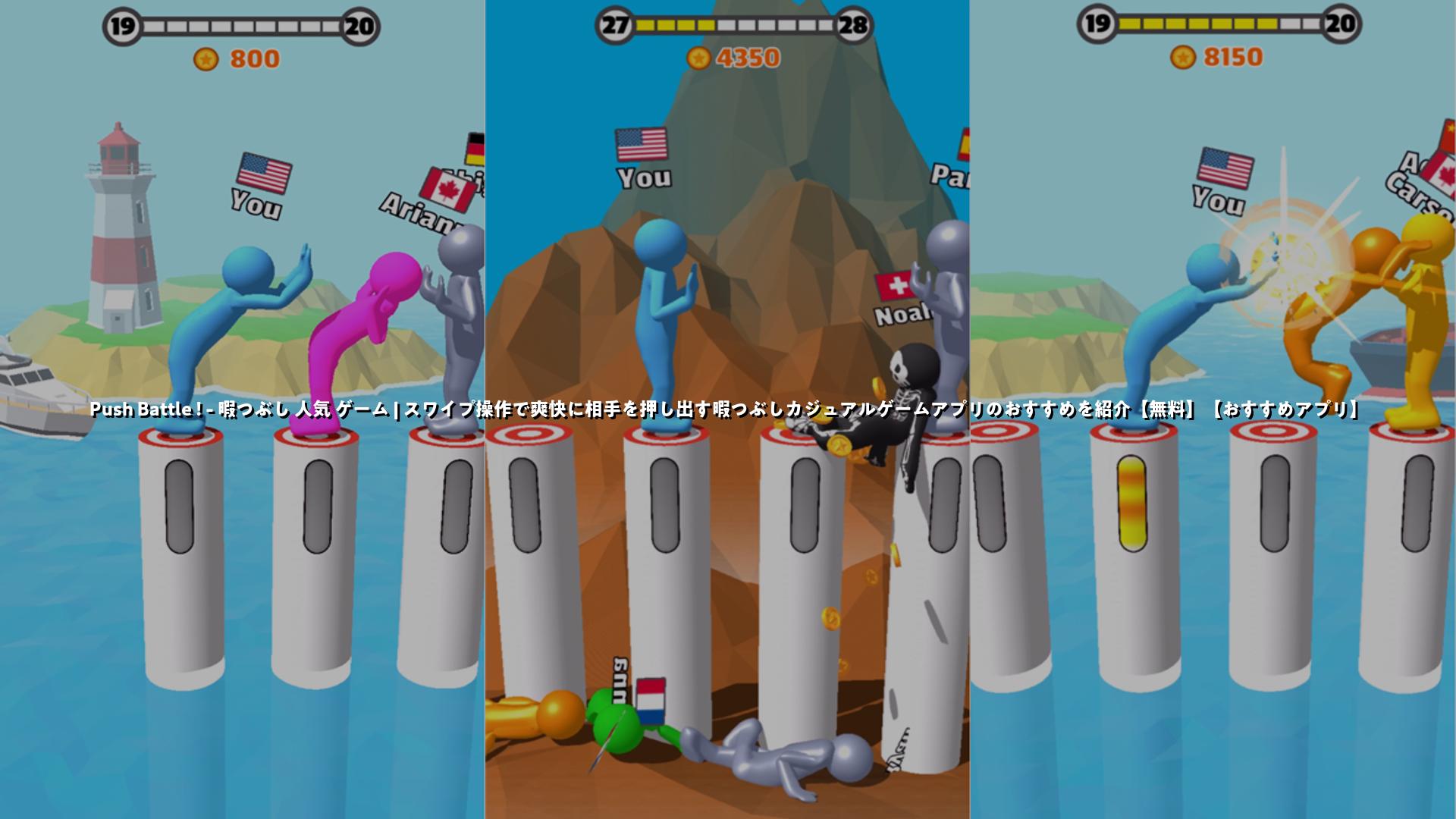 このアプリの特色は何と言っても「シンプル操作で爽快に相手を押し出せる」点です。スワイプだけで攻守を切り替えられるため、操作を覚える必要がほとんどなく、誰でもすぐに楽しめます。また、勝利時の演出やコイン獲得、スキン収集などの要素があるため、短時間プレイを繰り返して集める楽しみもあります。画面タップでのタイミング勝負的な楽しさもあり、連続で相手を落としたときの達成感が魅力です。