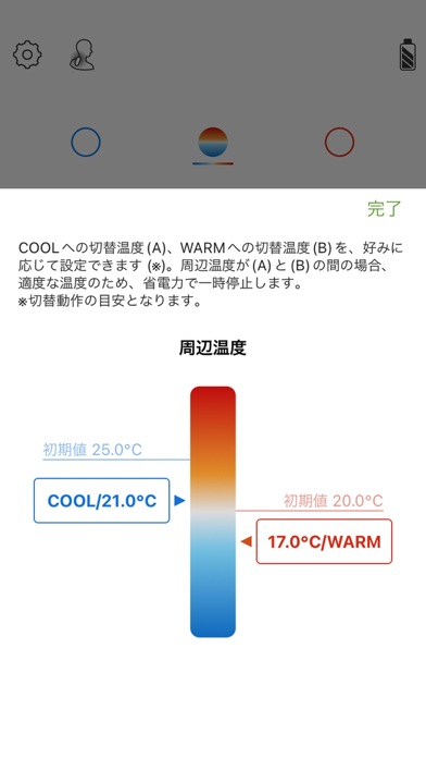 REON POCKETアプリは、接続したデバイスの温度モード(冷却/加温)、強弱の切り替え、プリセットモードやWaveなどのリズム動作の設定を行えます。温度や動作の切り替えはスマホから行えるため、わざわざ本体を触らずに操作できるのが便利です。レビューでは「静かで送風音がない」「冷たく気持ちいい」といった感想があり、室内でのデスクワークや自転車通勤、ウォーキングなどで効果を実感するユーザーが多いようです。また、端末側で温度・湿度・バッテリー情報が参照できるため、使いながら状態を把握しやすい点も評価されています。