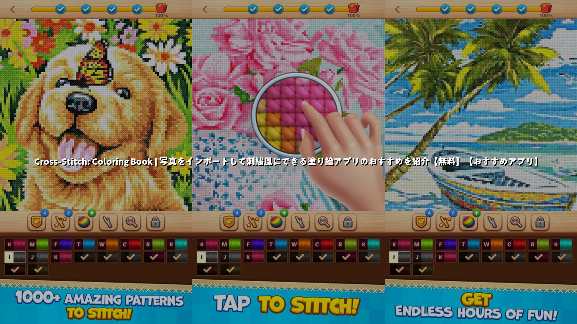 写真をインポートしてクロスステッチ風の模様を作れる「Cross-Stitch: Coloring Book」を紹介します。動物や花、曼荼羅など豊富なカテゴリーと日替わりパターンで、手軽にリラックスしながら色塗りを楽しめます(無料・アプリ内課金あり)。