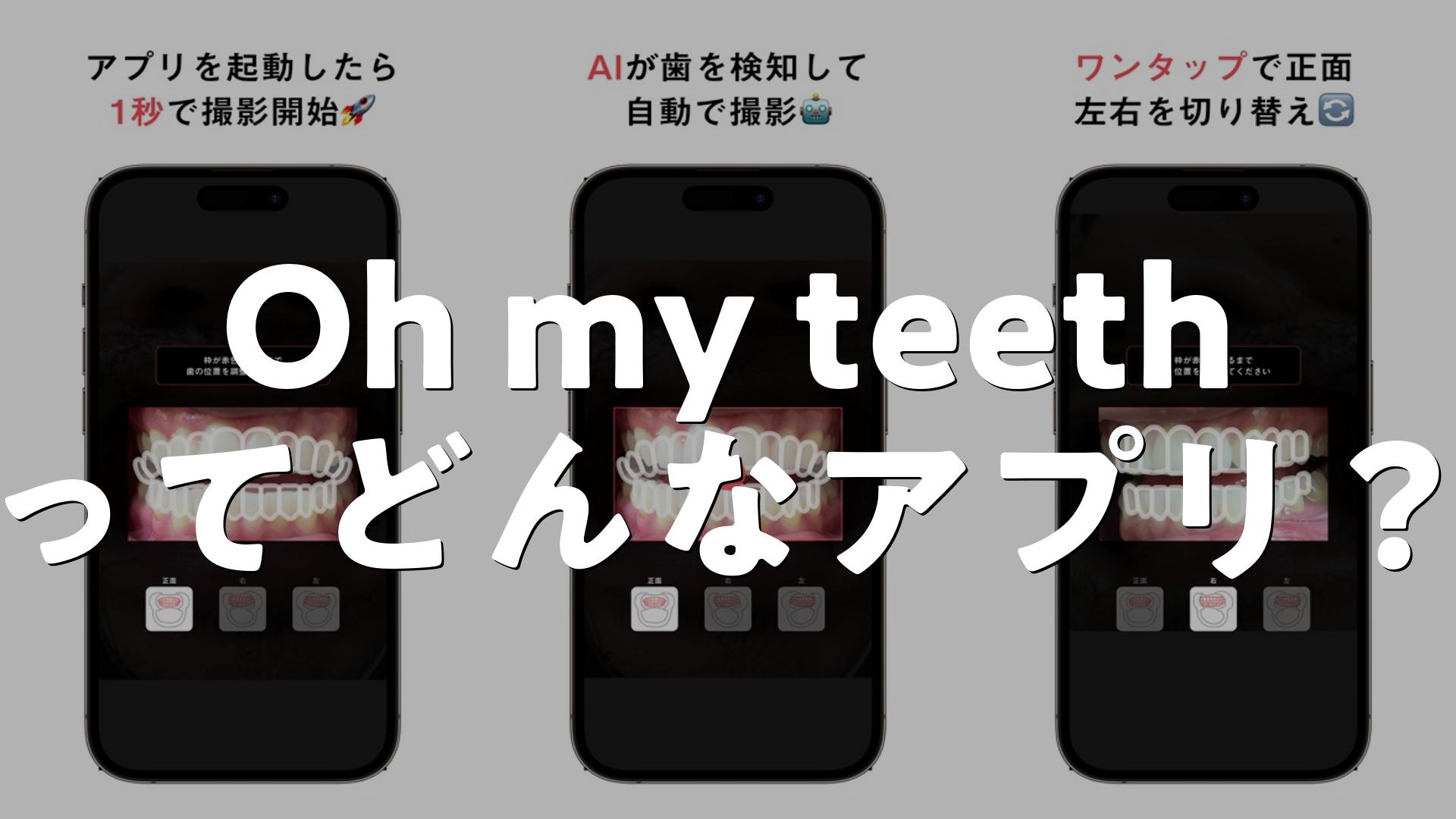 Oh my teeth – Cameraは、マウスピース矯正サービス「Oh my teeth」向けの専用撮影アプリです。AI判定や撮影支援機能を備え、歯の状態を定期的に記録・判定することで、通院回数を抑えた遠隔管理をサポートします。Oh my teeth自体は日本初のD2C歯科矯正サービスで、透明マウスピースを用いた矯正を従来より手頃な価格で提供し、最低通院回数0回・専属パーソナルコーチによるサポートを特徴としています。