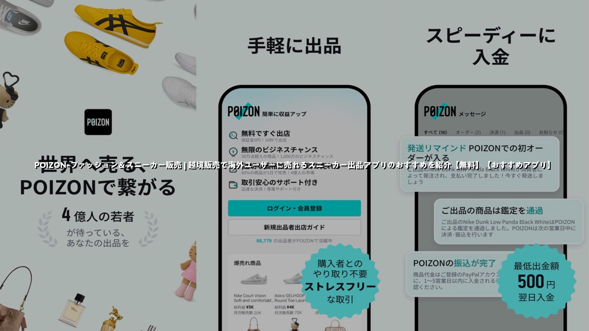 ポイズンはスニーカーを中心とした越境ECアプリで、かんたん出品や日本倉庫での検品・鑑定を通じて海外ユーザーへ販売可能。出品サポートや売れ筋確認が充実しており、副業や不要品の販売を始めたい方におすすめのアプリです。
