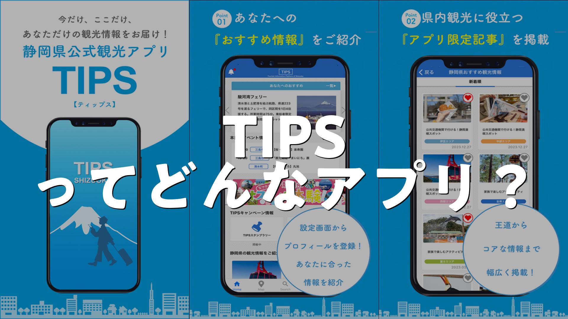 TIPSは静岡の観光情報を“今”のあなたに合わせて届ける公式アプリ。現在地やプロフィールでおすすめが変わり、スポット検索やまちめぐりビンゴで旅がもっと楽しくなります。初めての静岡観光にも心強い相棒です。