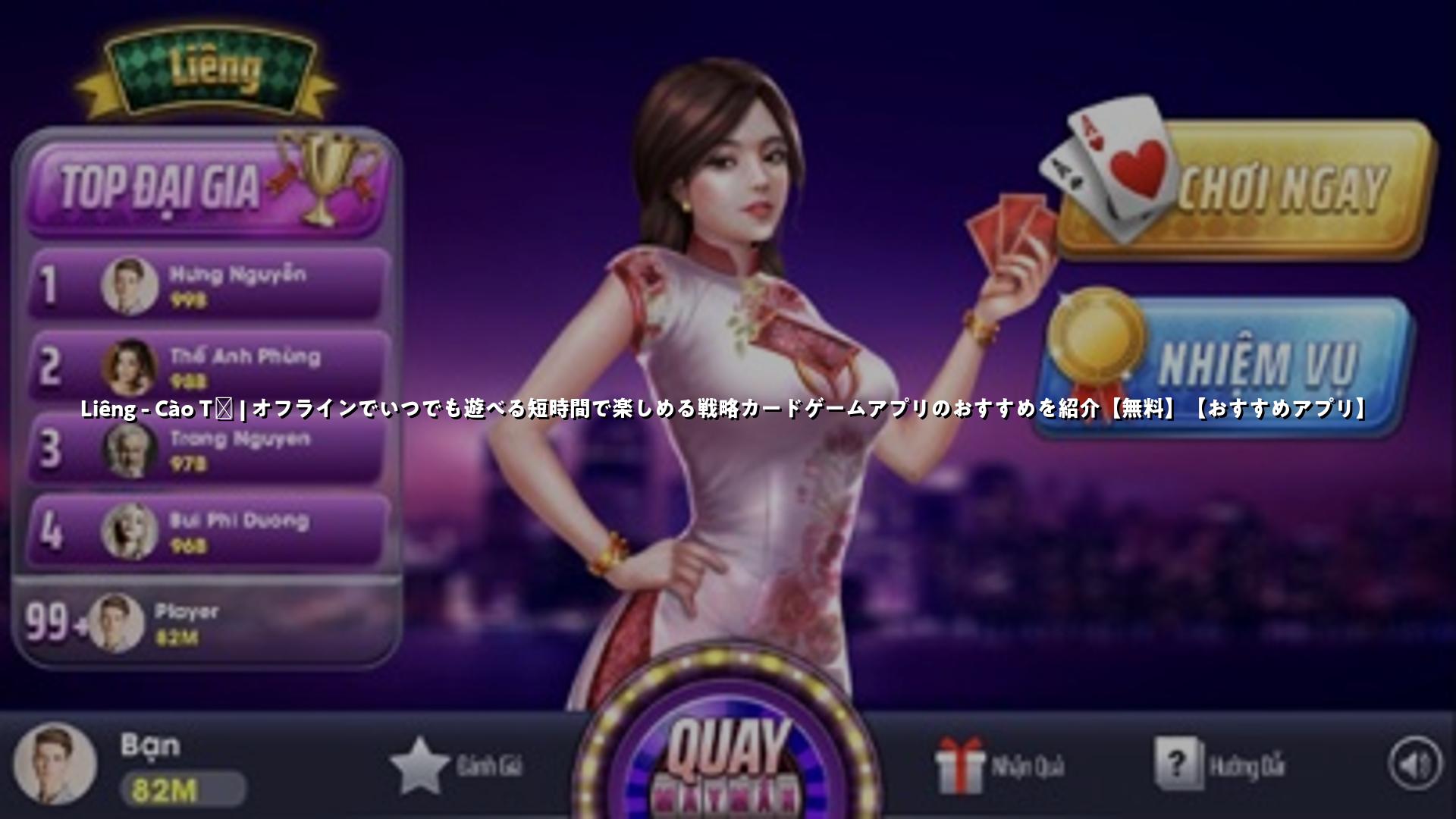 ベトナムで人気の3枚札ゲーム「Liêng – Cào Tố」を紹介します。オフラインで無料プレイが可能で、ルールは簡単、テンポの良い対戦で思考力や駆け引きを楽しめます。短時間で遊べるカジュアルな戦略カードゲームとしておすすめです。
