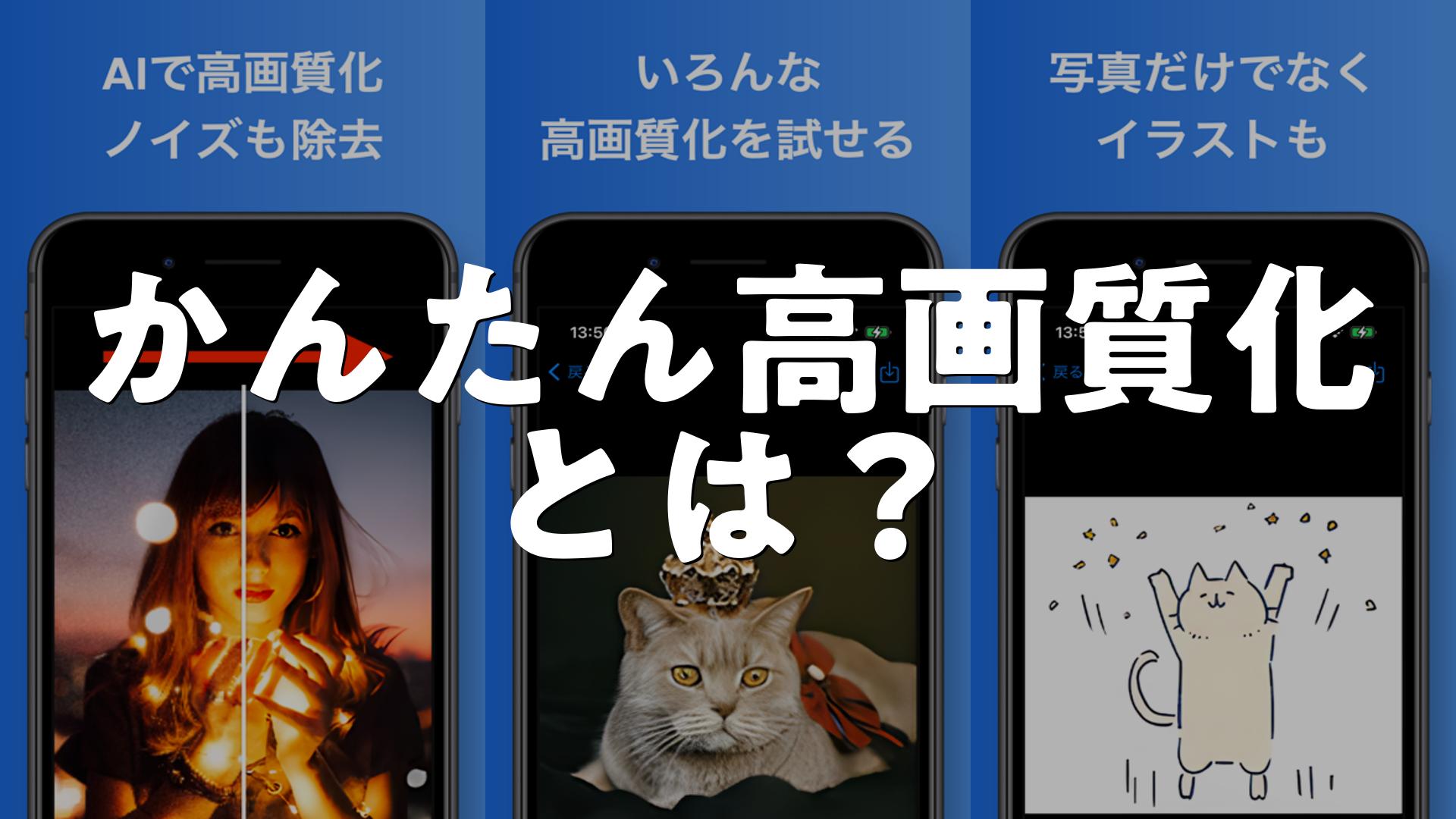 かんたん高画質化 – ぼやけた写真や画像もキレイに修復&改善とはどんなアプリか、使い方、評価、無料かをまとめました