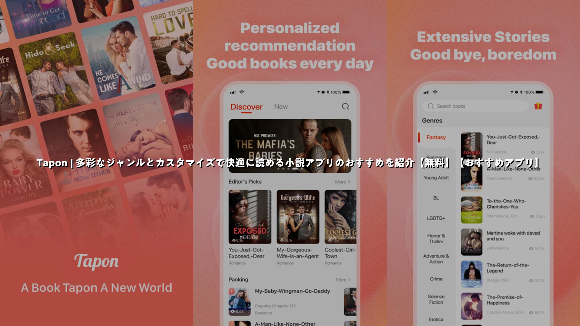 Taponは社長恋愛、転生、都市恋愛、超能力、ファンタジー、仙侠武侠、歴史軍事など幅広いジャンルのオンライン小説がそろうアプリです。パーソナライズされたおすすめや毎日の更新で新作に出会いやすく、背景やフォントサイズ・行間・明るさなど細かく調整して快適に読書できます。VIP会員になると定期的にコインやクーポンが付与され、ログインボーナスや不定期のイベントで特典を得られます。