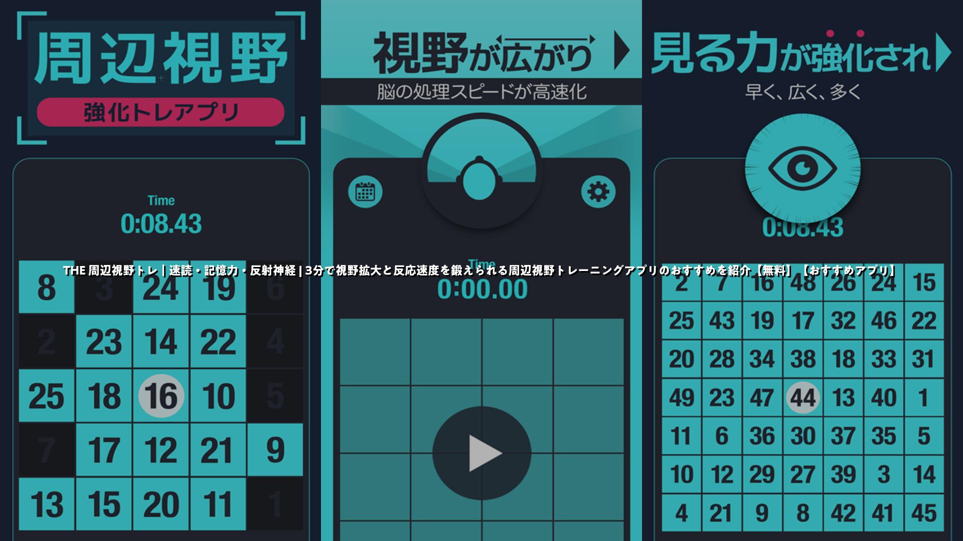 3分でできる周辺視野トレーニングアプリ「THE 周辺視野トレ」は、速読・記憶力・反射神経を同時に鍛える脳科学ベースのツール。初心者でも続けやすく、無料版でも広告付きで幅広く試せるのが魅力。毎日数分の習慣で違いを実感できます。