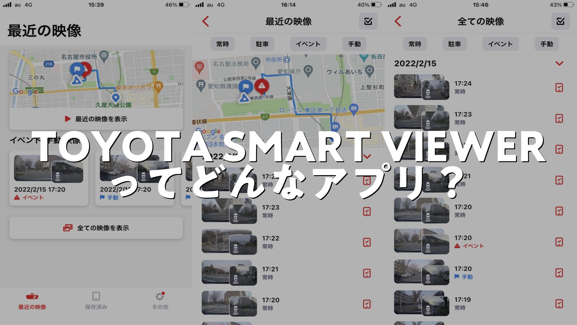 トヨタ純正のドライブレコーダー連携アプリ「TOYOTA SMART VIEWER」は、車内で映像をすぐに確認したい方に便利。直近2日分の連続動画やイベント録画の閲覧、スマホへのダウンロードが可能で、位置情報や予測速度も表示されるため日常使いで安心感があります。
