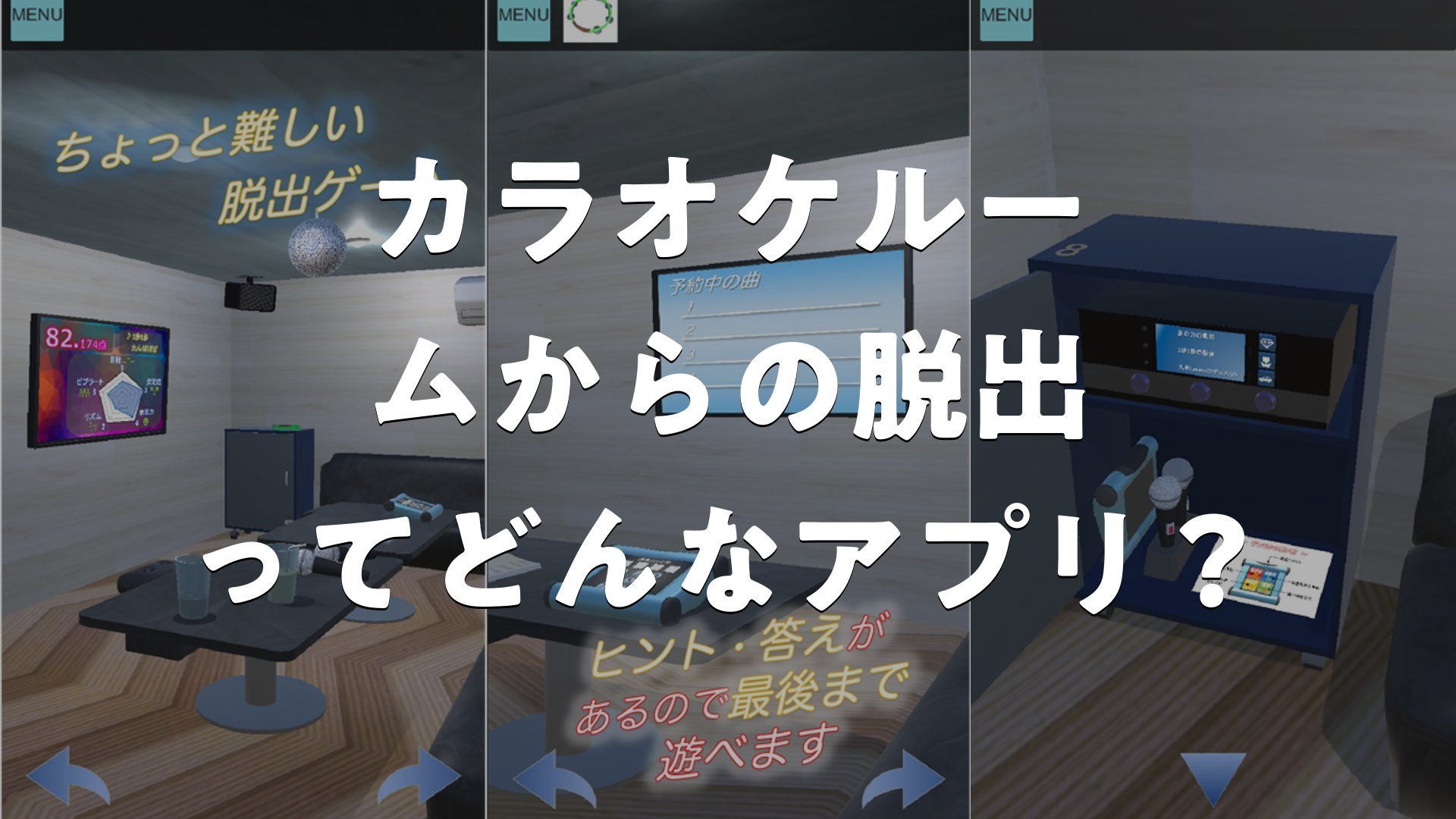 操作がとても簡単で誰でも気軽に始められる脱出ゲームです。カラオケルームという斬新な舞台設定も魅力的で、新鮮な気持ちで楽しめました。ヒント機能が充実しているので、詰まっても安心して遊べる点も嬉しいですね!(編集部)