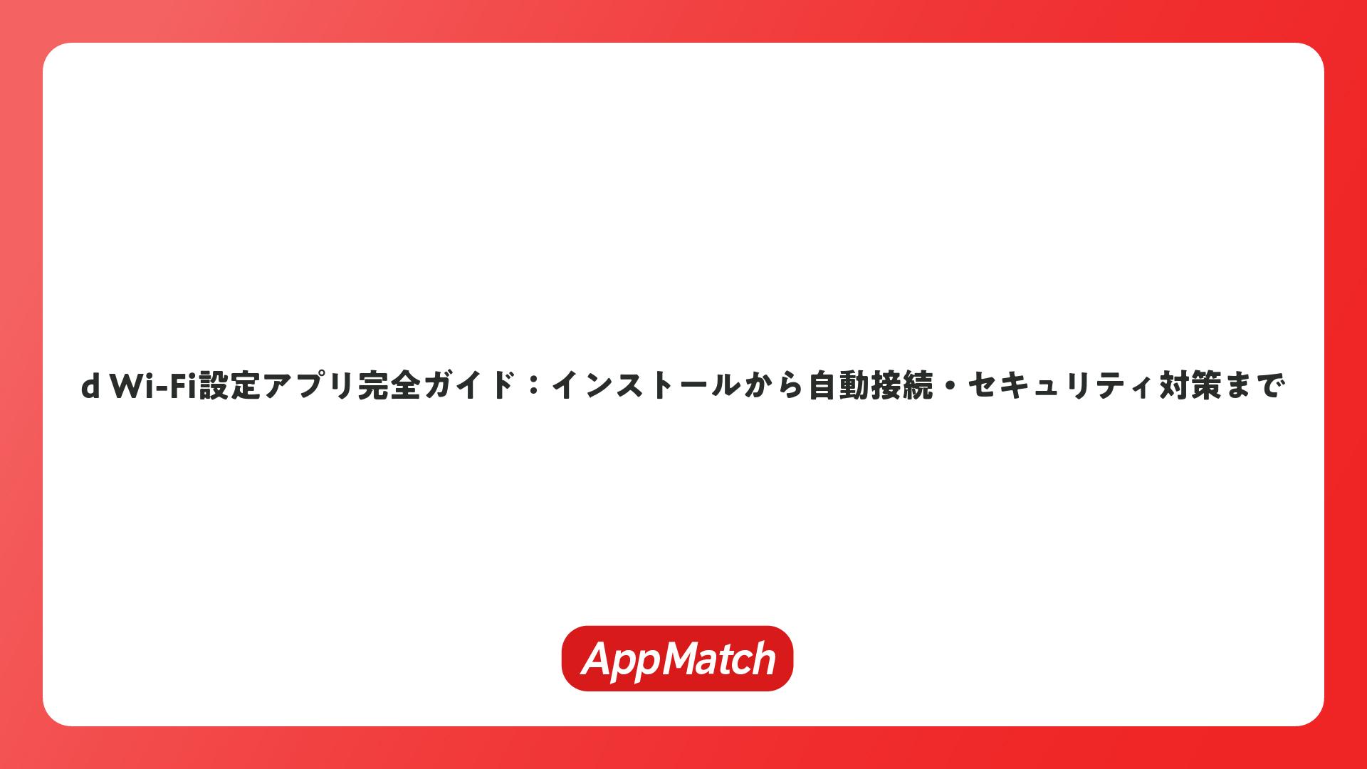 d Wi-Fi設定アプリ完全ガイド:インストールから自動接続・セキュリティ対策まで