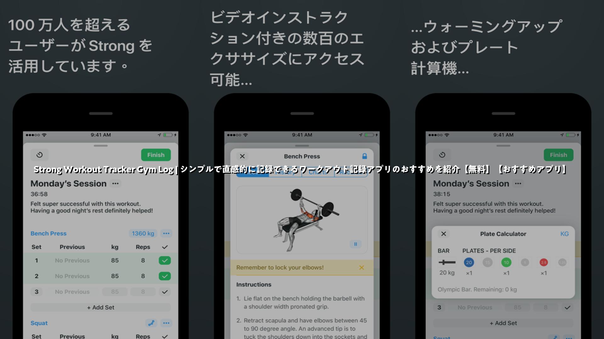 シンプルで直感的に使えるワークアウト記録アプリ「Strong」を紹介します。テンプレート作成、休憩タイマー、Apple Watch連携、プレート計算機など筋トレに必要な機能が揃い、無料でも十分使えるのが魅力。初心者から上級者まで幅広く対応するおすすめアプリです。