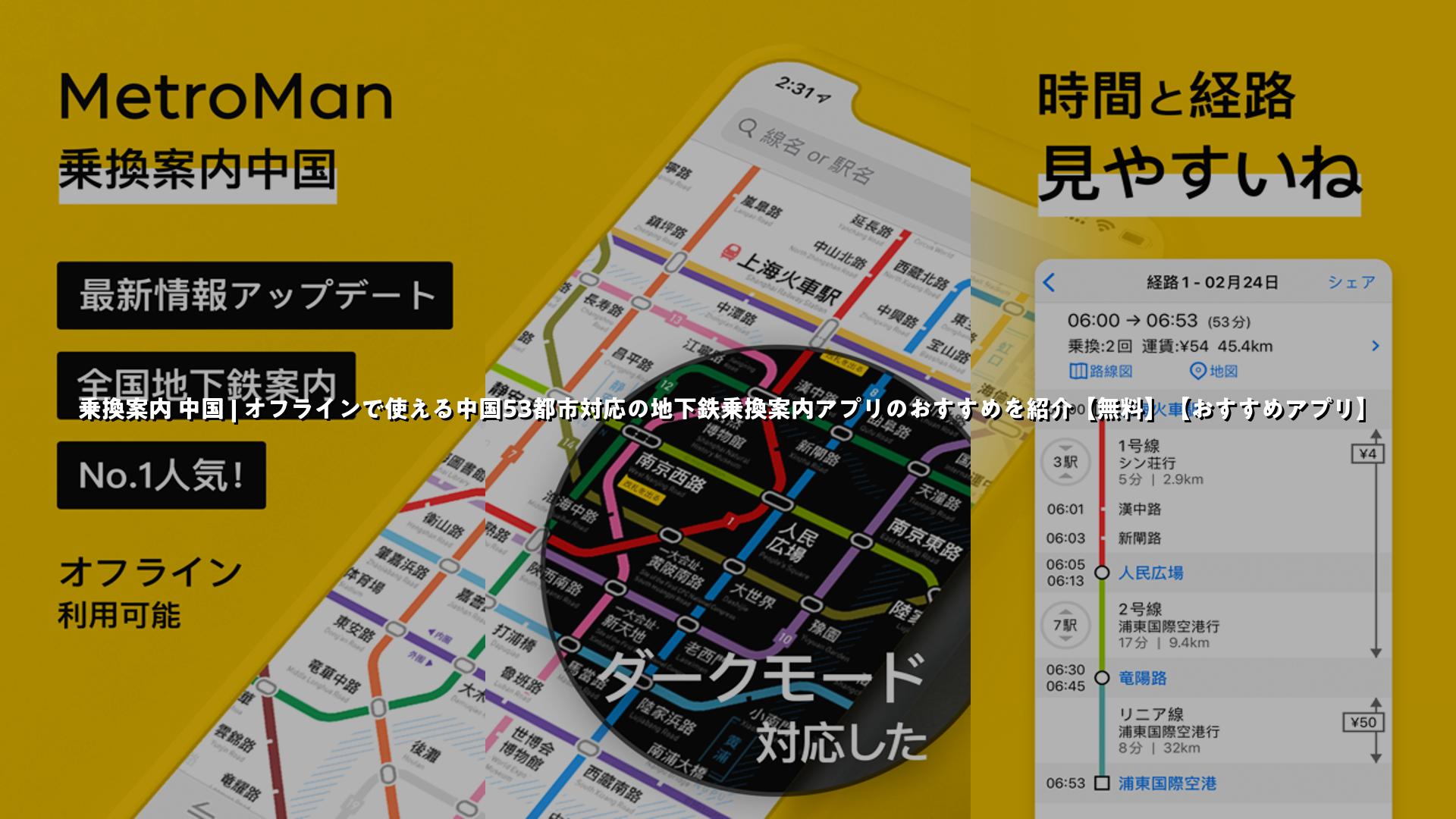 この記事では、オフラインで使える中国の地下鉄アプリ「MetroMan」をご紹介します。53都市に対応し多言語表示や乗換案内、最新路線図が魅力。ただし広告表示に関する不満が多く、広告を避けたい場合は有料サブスクリプションの検討がおすすめです。