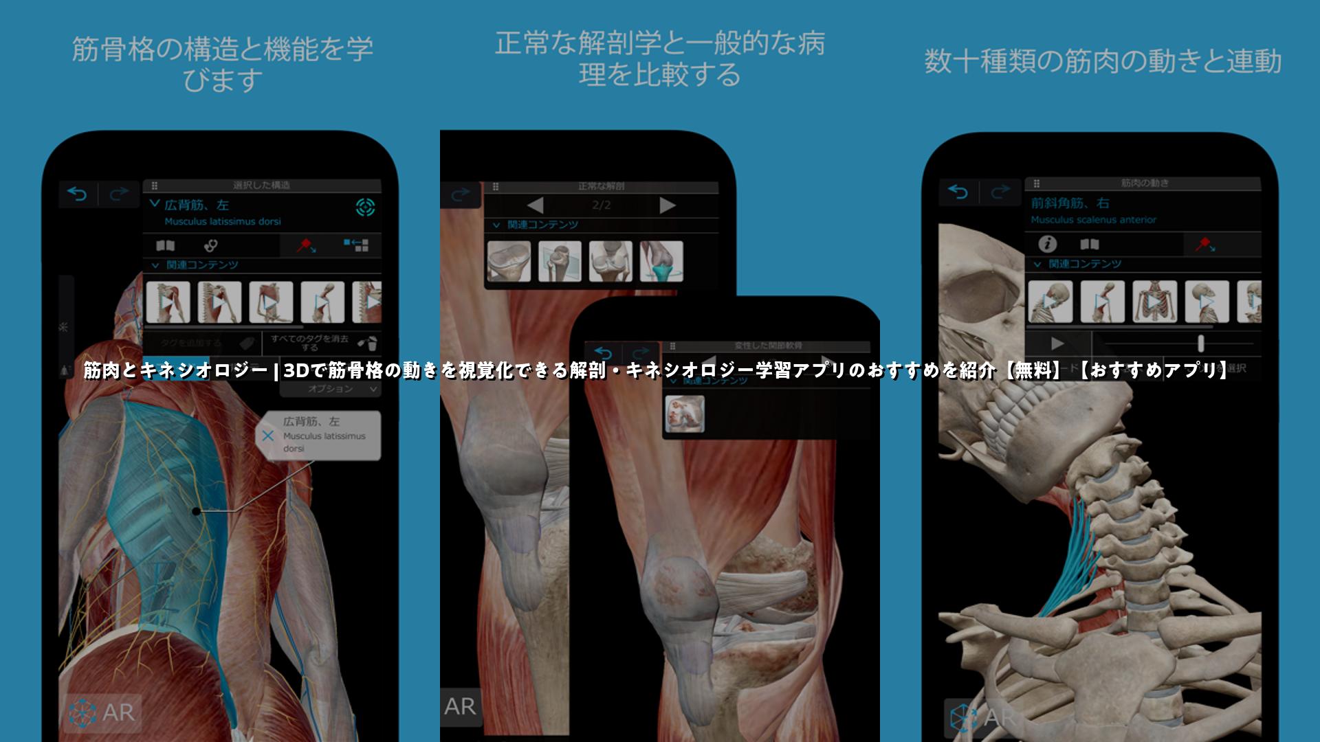 筋肉とキネシオロジーできる筋肉・動作学習の無料アプリのおすすめをまとめました
