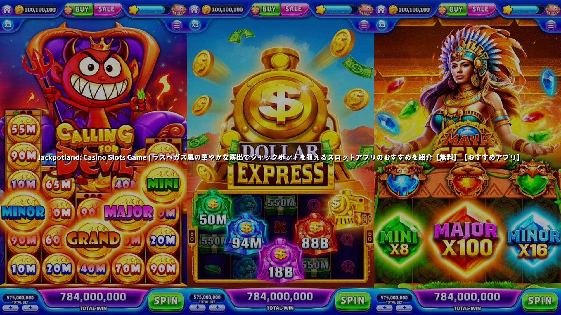 Jackpotlandはラスベガスやマカオのカジノ雰囲気をスマホで再現したスロットゲームです。美麗なビジュアルと演出、多数のスロットマシン(クラシック系からテーマ系まで)を備え、各機種に専用のボーナスゲームやプログレッシブジャックポットがあります。ログインボーナスや15分・3時間ごとの無料コイン、ラッキールーレットなど大量の無料配布があり、クエストやミッションで報酬をアンロックしながら遊べます。ソーシャル要素で友達と競ったりクラブ機能で交流することも可能です。一方で、広告表示や課金を促すポップアップについての不満もレビューに多く見られます。