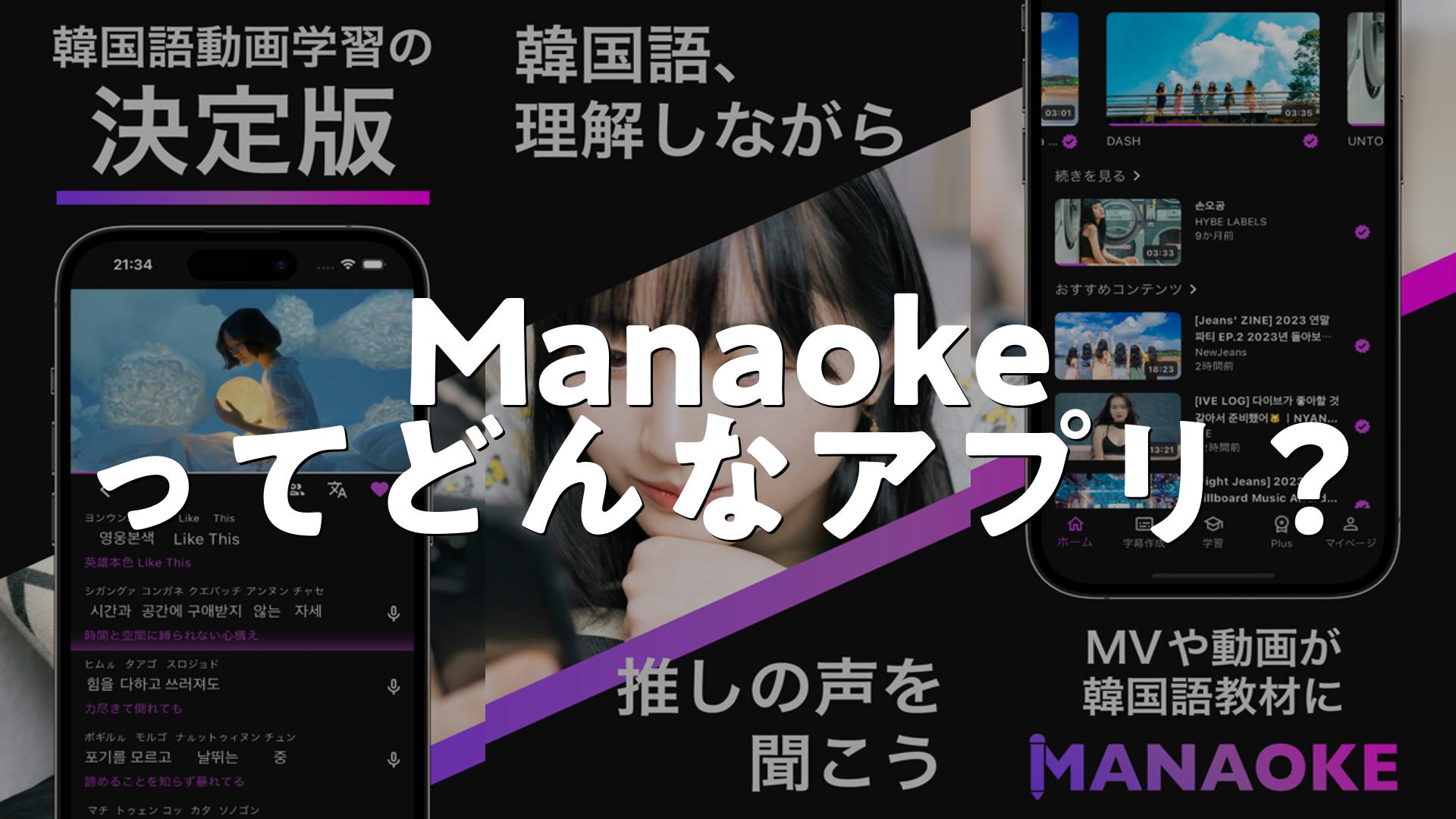 Manaokeは、歌詞に読み仮名・品詞・意味・日本語訳を付けてK-POPを楽しみながら韓国語を学べるアプリです。お気に入り登録で推しをすぐに再生でき、最新曲やコンテンツも早期対応。無料で基本機能を試せ、Manaoke Plusに加入すると動画の無制限視聴や広告非表示、学習コンテンツの無制限利用などが可能になる学習特化型のサービスです。