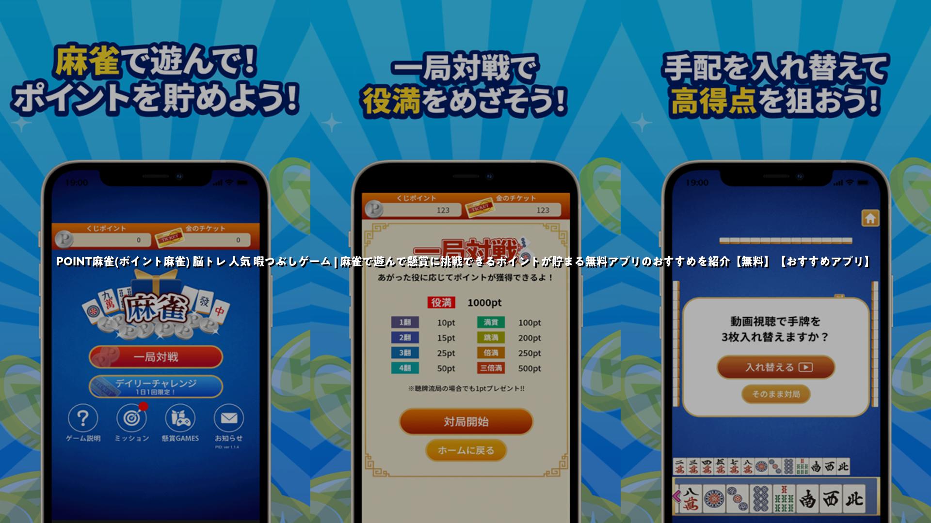 この記事では、完全無料で麻雀をプレイしながらポイントが貯まるアプリ『POINT麻雀』を紹介します。東風戦中心の手軽な対局で頭の体操にもなり、獲得したポイントで抽選に参加して懸賞に挑戦できます。初心者向けの操作で学びやすく、短時間で遊べる設計なので通勤・休憩時間の暇つぶしに最適です。広告でも遊べます。