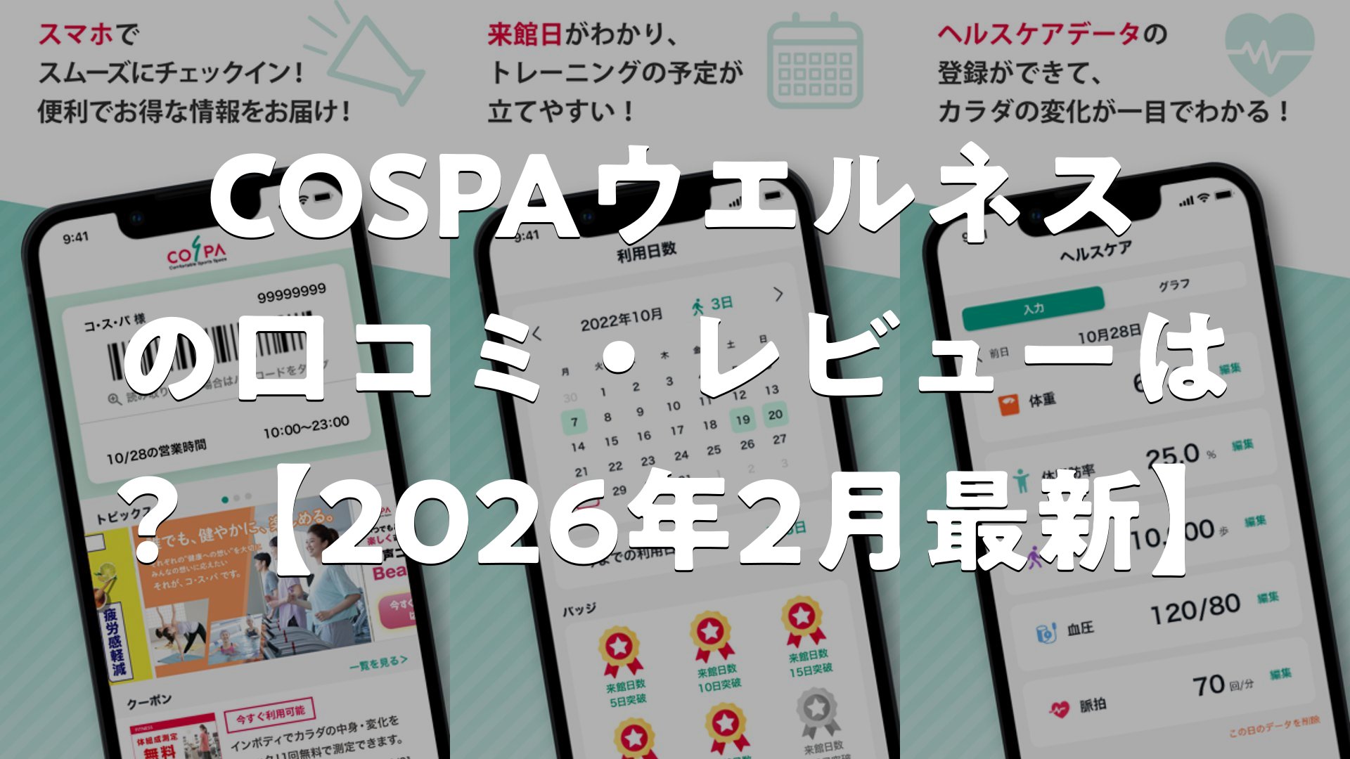 COSPAウエルネス 公式アプリは、会員証の表示や優待クーポンの受け取り、レッスン予約などの便利な機能が高く評価されています。また、自身の健康データを簡単に記録・管理できることも大きな魅力です。
