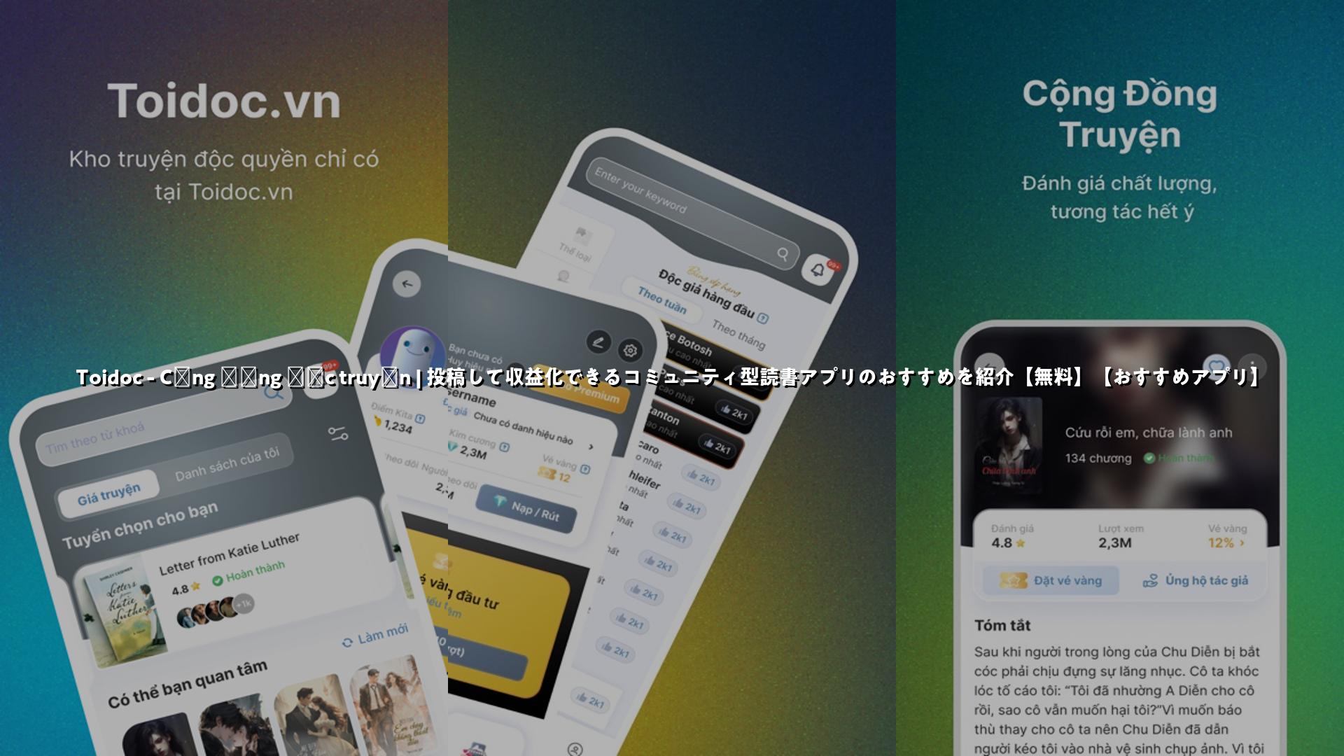 インターネット小説のコミュニティ型アプリ「TOIDOC」を紹介します。多彩なジャンルと会員投稿の豊富な作品群、広告視聴で得られるダイヤやイベント報酬、投稿者への収益分配など、読むだけでなく参加して稼げる機能が充実したおすすめの一作です。