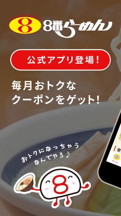 1967年創業の北陸ラーメンチェーン「8番らーめん」の公式アプリ。会員登録でお得なクーポン(毎月8日の8%引きなど)が受け取れ、最新情報やメニュー、店舗検索ができるほか、ハチコによるナビやフォトフレーム、占い・間違い探しなどの遊び要素も搭載された公式サービスアプリです。国内店舗限定で利用可能となっています。