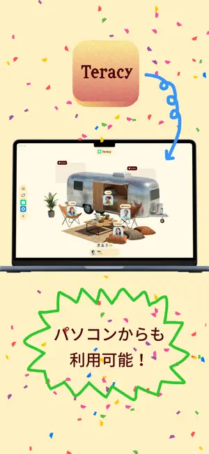 Teracyは、大切な人とのリアルタイムコミュニケーションを楽しめるアプリです!ロックスクリーンやダイナミックアイランド上で友達の気配をリアルタイムに感じられて、まるで隣にいるみたいな感覚を味わえるのが特徴。ルームに集まればボイスチャットやFaceTime、画面共有までシームレスに使えて、離れていても一緒に過ごしている安心感があります。パソコンとスマホの両方対応だから、気軽にゆるっと繋がれるのが嬉しいポイントです!