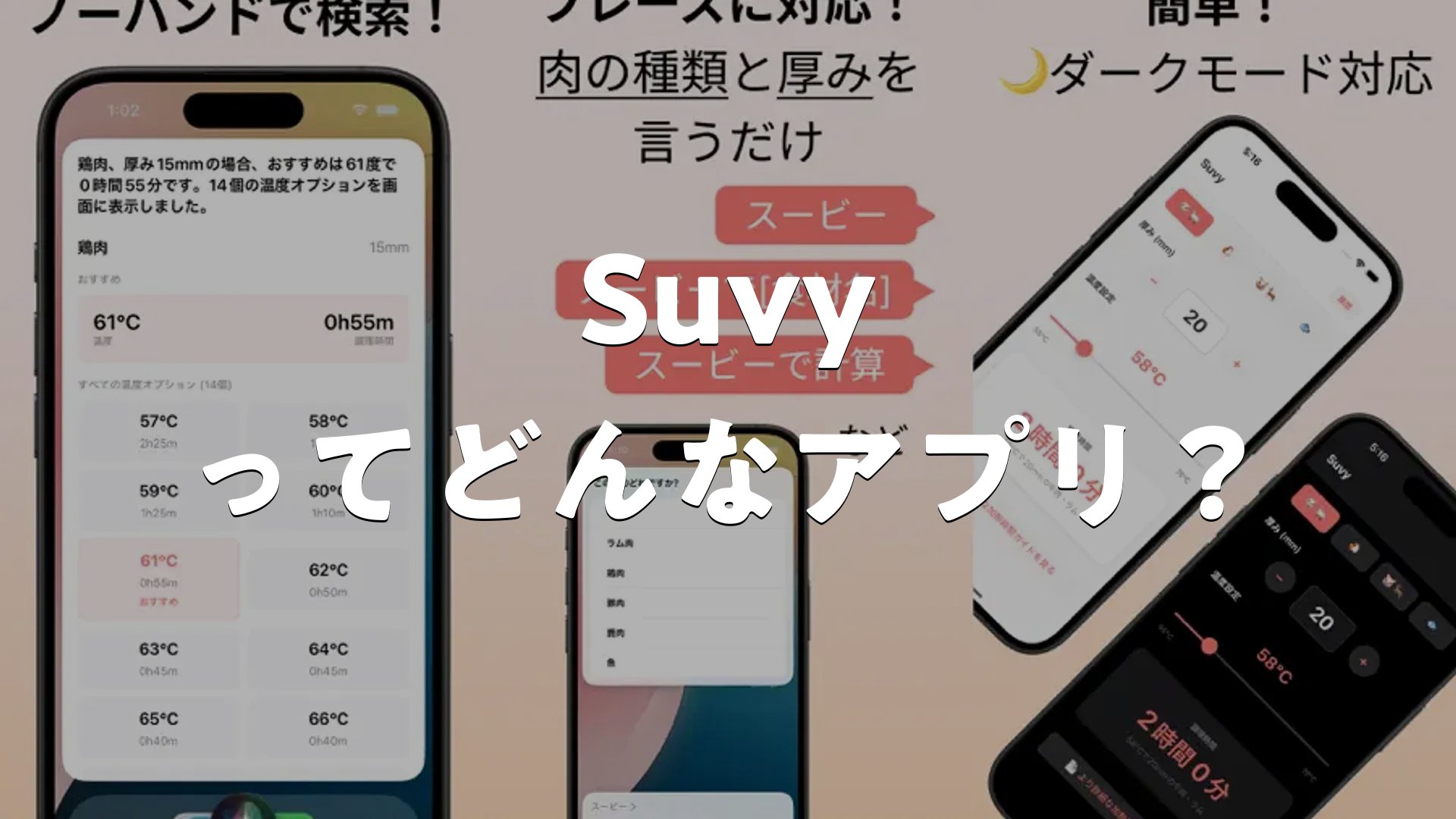 低温調理をもっと手軽に楽しみたい方におすすめなのが「Suvy – 音声でわかる低温調理タイマー」。Siriに話しかけるだけで最適な温度と時間を教えてくれる、低温調理の頼れるアシスタントアプリです。手が濡れていても声だけで操作できるので、調理中のストレスがぐっと減りますよ。