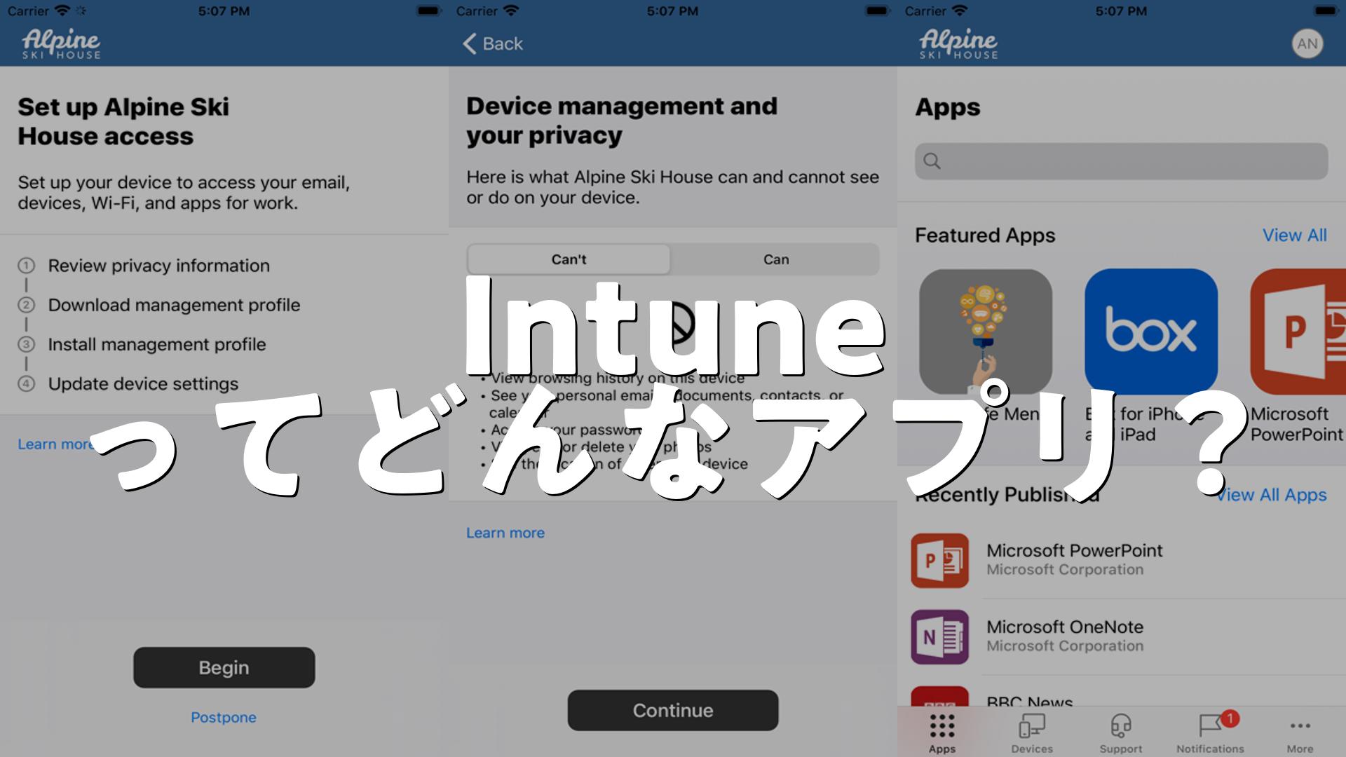 まとめ:Intune は企業データを保護するために強力な管理機能を持ちますが、そのために端末の挙動やアプリ権限に制約がかかることがあります。個人端末で導入する場合は、企業側からどのデータが管理されるのか、どの権限が必要かを明確に説明してもらうことが重要です。
