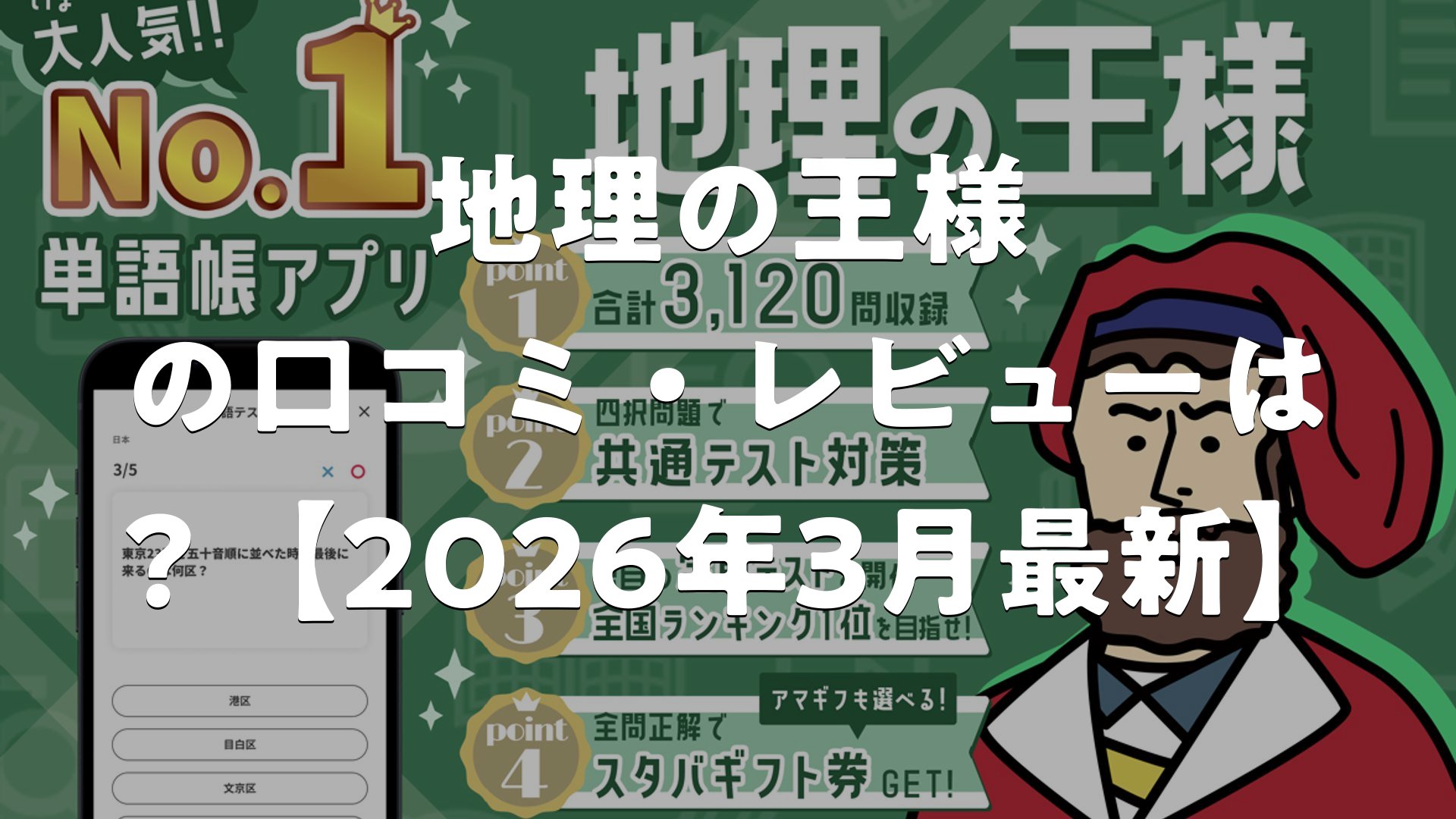 地理の王様-高校地理・中学地理を勉強する問題集アプリの口コミ・レビューについてまとめました