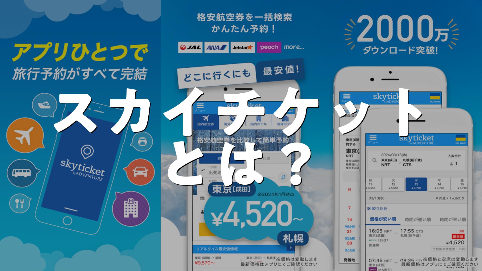スカイチケット 格安航空券・ホテル・レンタカーの予約アプリとはどんなアプリか、使い方、評価、無料かをまとめました