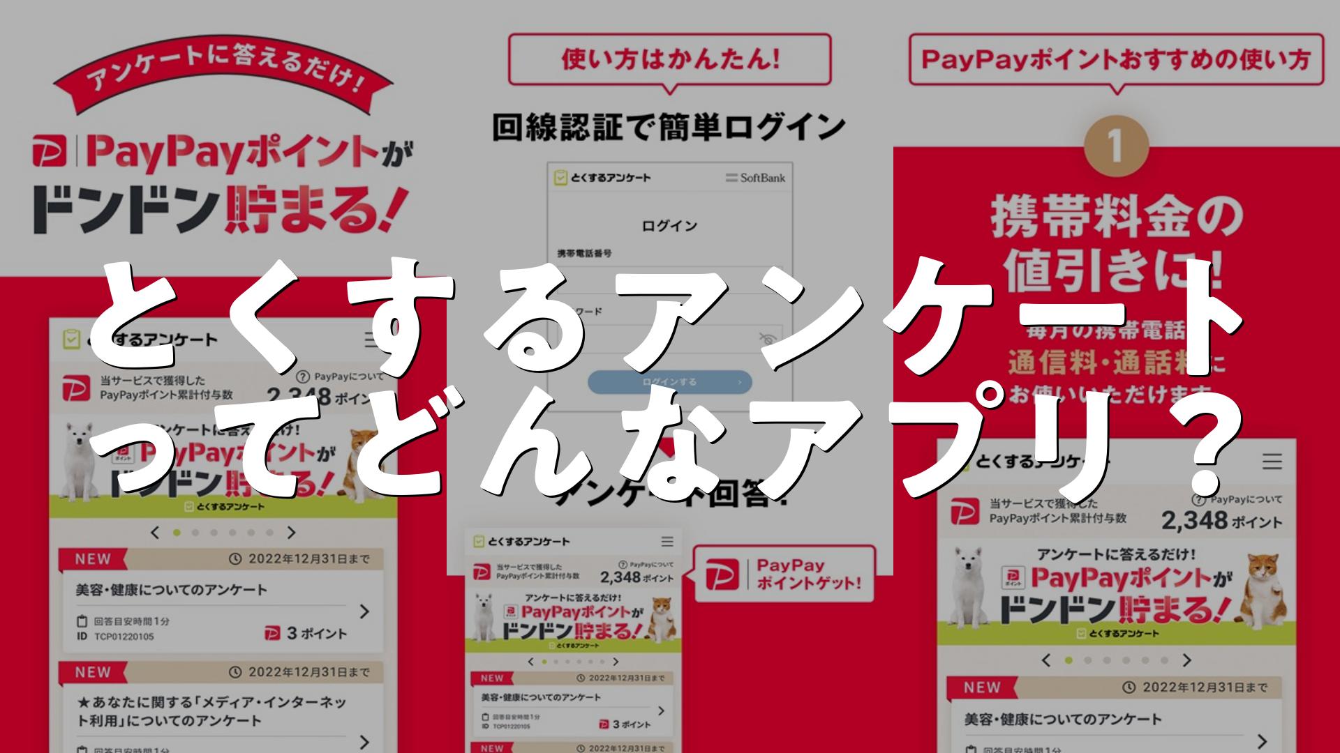好きなタイミングで好きなアンケートに答えるだけで、PayPayポイントがもらえるサービスです。