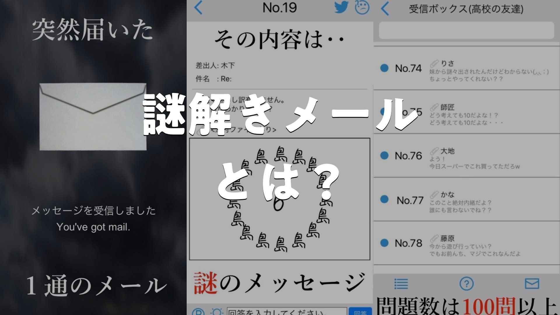 謎解きメールとはどんなアプリか、使い方、評価、無料かをまとめました