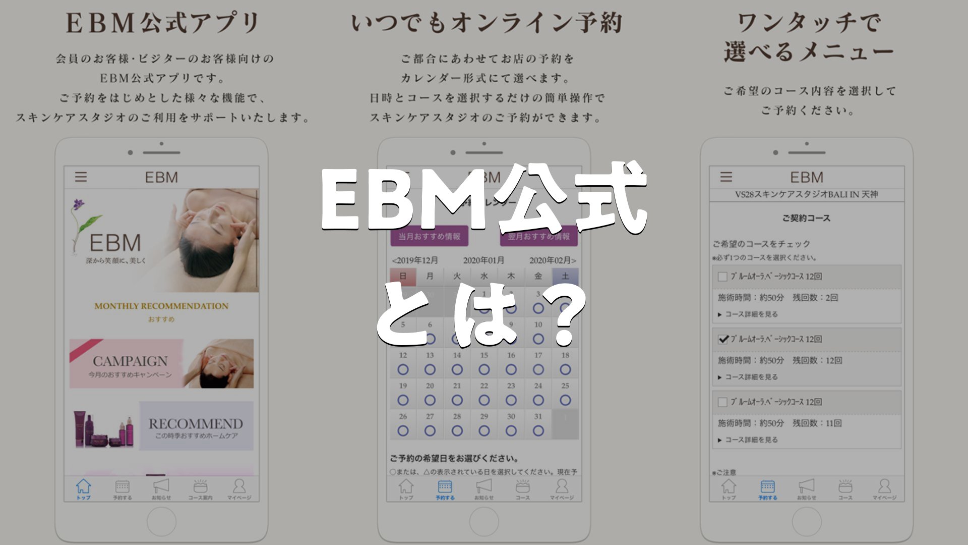EBM公式アプリは、スキンケアスタジオの会員やビジター向けに提供されている公式アプリです。これを使えば、いつでも簡単にオンライン予約ができ、美容に役立つお得なキャンペーン情報やイベント通知を受け取れます。さらに、マイページからポイントや来店履歴が確認でき、24時間いつでもEBMオンラインショップでの買い物も可能です。日常の美容ケアがもっと便利で楽しくなるアプリです。