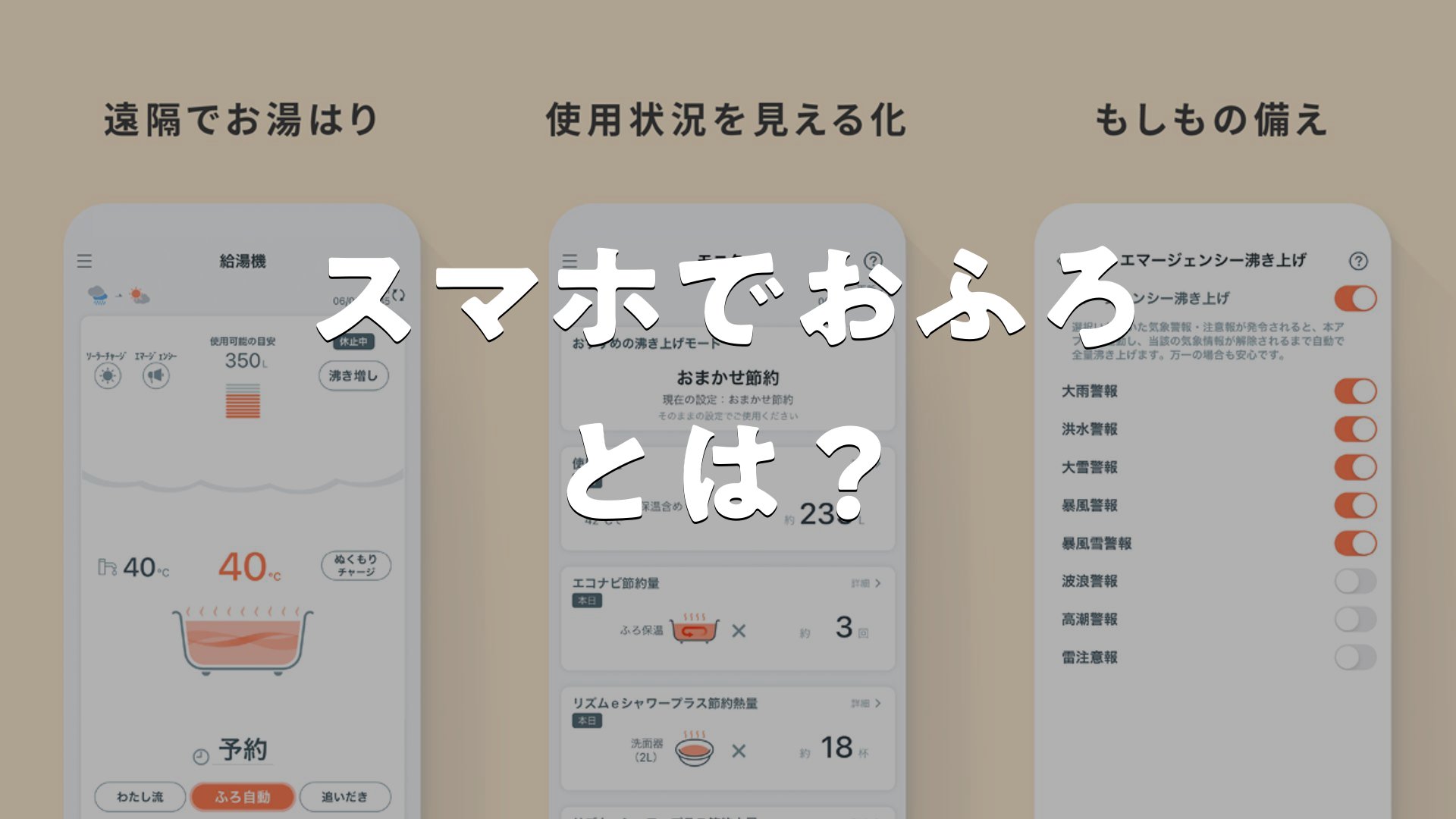 • 災害時に気象警報と連携してお湯を自動で確保できる安心感がある