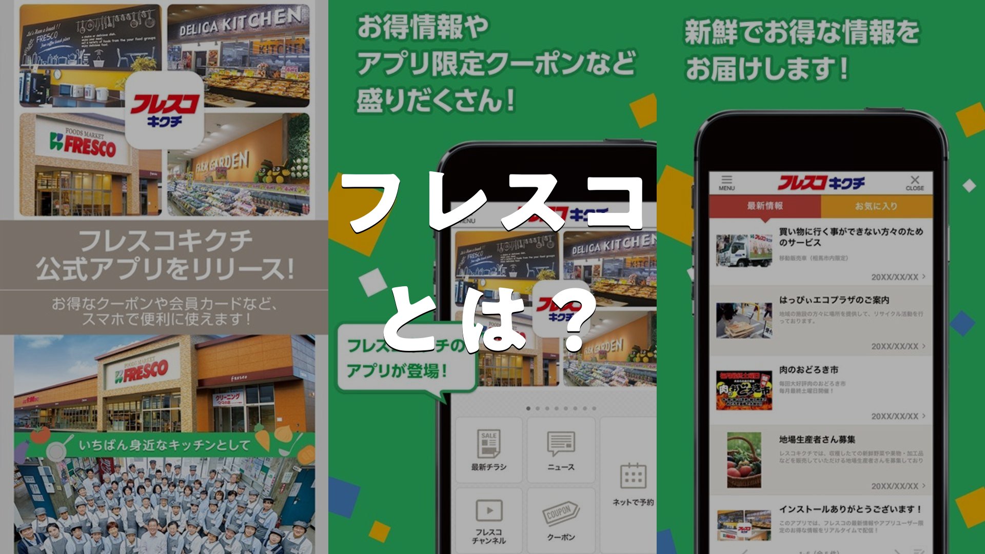 フレスコアプリは、フレスコキクチの情報がリアルタイムで手に入る公式無料アプリ。最新チラシやクーポンをチェックしてお得に買い物ができ、店舗検索や求人情報も便利に活用可能。予約機能を使えば季節商品の注文も簡単です。無料でダウンロードでき手軽に使えるので、フレスコキクチユーザーにはとてもおすすめのサービスです。