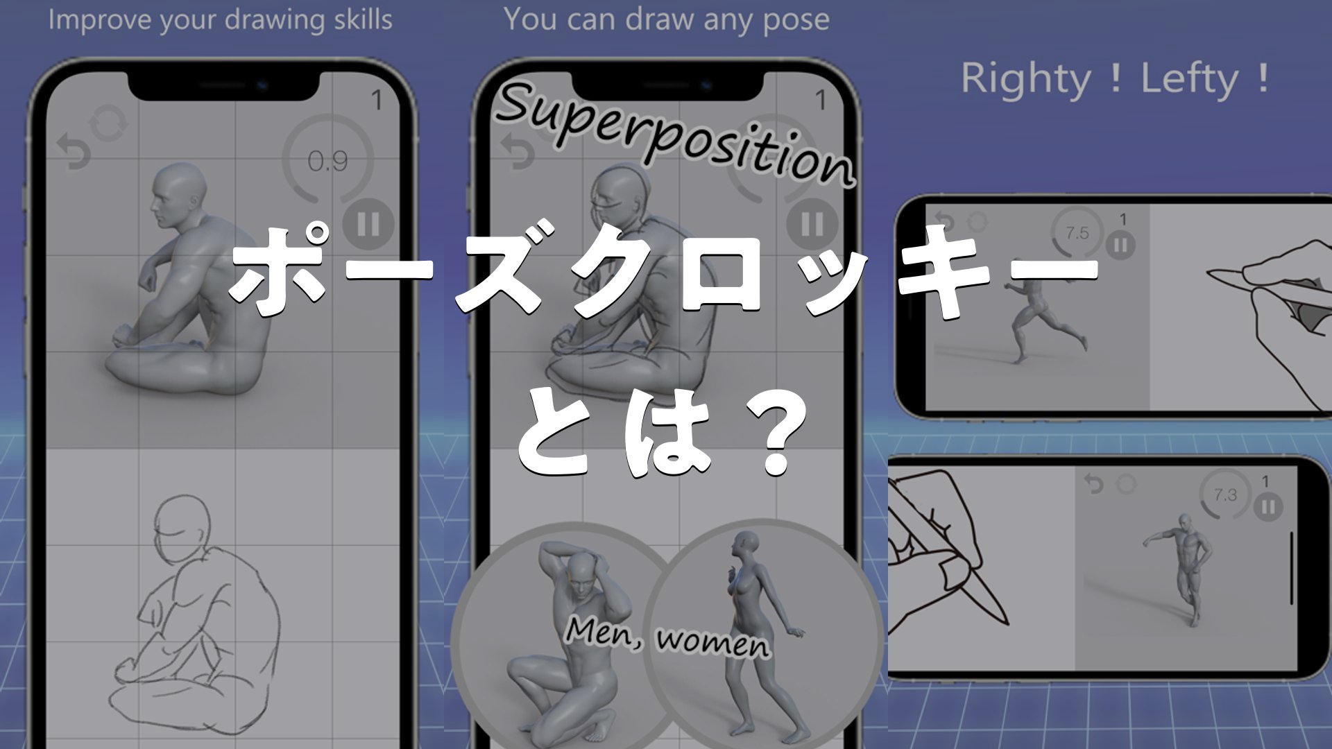 ポーズクロッキーとはどんなアプリか、使い方、評価、無料かをまとめました