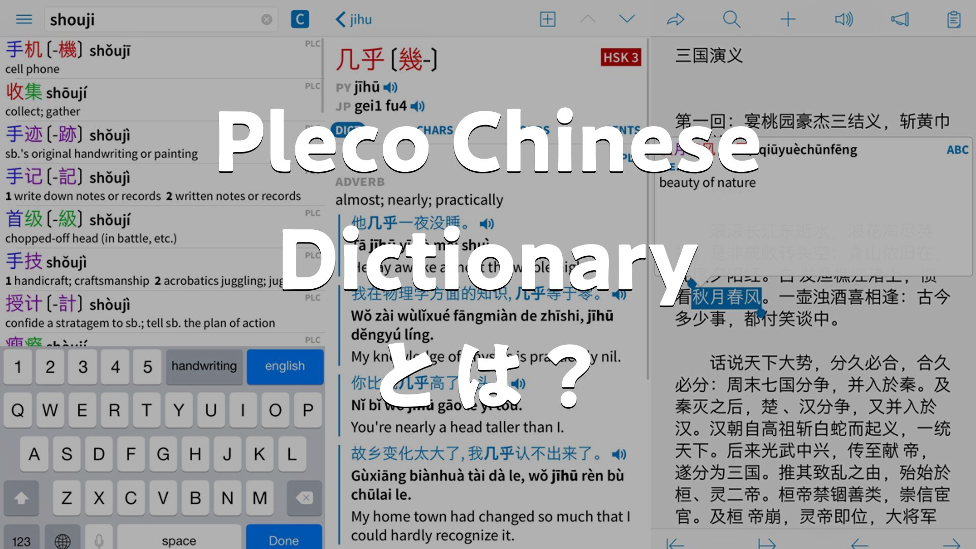Pleco Chinese Dictionaryとはどんなアプリか、使い方、評価、無料かをまとめました