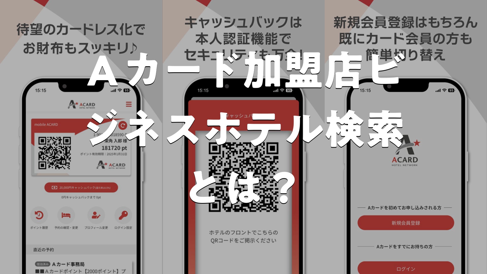 Aカード加盟店ビジネスホテル検索アプリは、全国の加盟ホテルを簡単に検索・予約できるうえ、驚きの高還元率でポイントを貯めて即キャッシュバック可能なポイントプログラムが魅力です。カード不要でスマホひとつで管理でき、年会費無料で気軽に利用可能。出張や旅行でホテルを利用する方にとって非常に便利でお得なアプリと言えます。