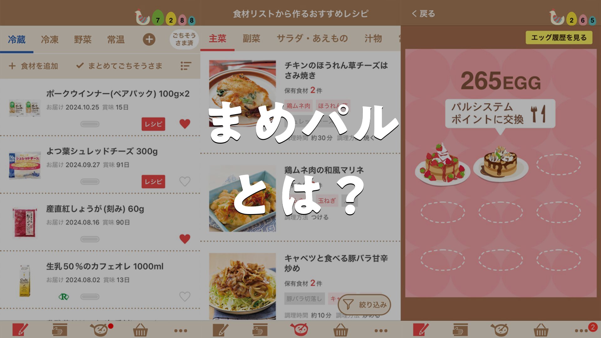 実際にまめパルを使ってみましたが、食材のチェックや管理がとても簡単で感動しました。特に「ごちそうさま」機能で食材をこまめに管理でき、献立提案も便利です。ポイントが貯まる仕組みも楽しみながら使えます。パルシステム組合員にはぜひ試してほしいアプリですね。(編集部)