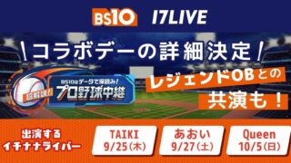 最新ニュース BS10:人気の野球中継番組との”17LIVEコラボデー”の詳細が決定!『BS10はデータで深読み!超解説!プロ野球中継』に3名のライバーが出演! ニュースの要約「BS10」の人気野球中継番組『BS10はデータで深読み!超解説!プロ野球中継』とのコラボデーの詳細が決定3名のライバーが出演し、レジェンドOBとの共演も行われるライバーが個別のアカウントで中継の実況配信を行い、アフタートーク... 2025.09.25 最新ニュース