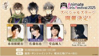 最新ニュース 『イケメン戦国 時をかける恋 -永縁-』:AGF2025にてスペシャルステージの開催が決定! ニュースの要約 『イケメン戦国 時をかける恋 -永縁-』がAGF2025にてスペシャルステージを開催 新キャストや主題歌アーティストを迎えたステージ内容 参加条件は物販3,000円以上の購入で優先観覧券が抽選配布概要株式会社サイバード... 2025.09.13 最新ニュース