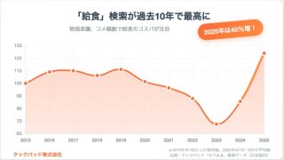 最新ニュース クックパッド:給食レシピ検索が1.4倍に急増、家庭が注目する「コスパ栄養術」 ニュースの要約 給食レシピの検索が昨年比1.4倍に急増 家庭が学校給食の「コスパ栄養術」を活用 人気の給食メニューの検索と保存が大幅に増加概要利用者数No.1のレシピサービス「クックパッド」を運営するクックパッド株式会社は、給食関連レ... 2025.09.12 最新ニュース