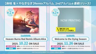 最新ニュース ヘブンバーンズレッド:麻枝 准×やなぎなぎ、新アルバムを2ヶ月連続発売決定!ドラマチックRPGの劇中歌を合わせて27曲収録 ニュースの要約 麻枝 准×やなぎなぎ、新アルバムを2ヶ月連続発売 ドラマチックRPG『ヘブンバーンズレッド』の劇中歌を含む27曲を収録 リミックスアルバムと2ndアルバムが相次いでリリース概要株式会社ビジュアルアーツは、ド... 2025.09.04 最新ニュース