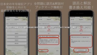 おすすめアプリ 日本史年号問題集 | スキマ時間で日本史の年号を効率暗記できる学習アプリのおすすめを紹介【無料】【おすすめアプリ】 日本史の年号を効率的に暗記したい人向けに、シンプルで反復学習に強い年号暗記アプリを紹介します。280問のステージ構成でスキマ時間に繰り返せる設計が魅力。広告表示はあるものの、受験対策の補助として高く評価されています。おすすめアプリの紹介この... 2025.10.08 おすすめアプリ